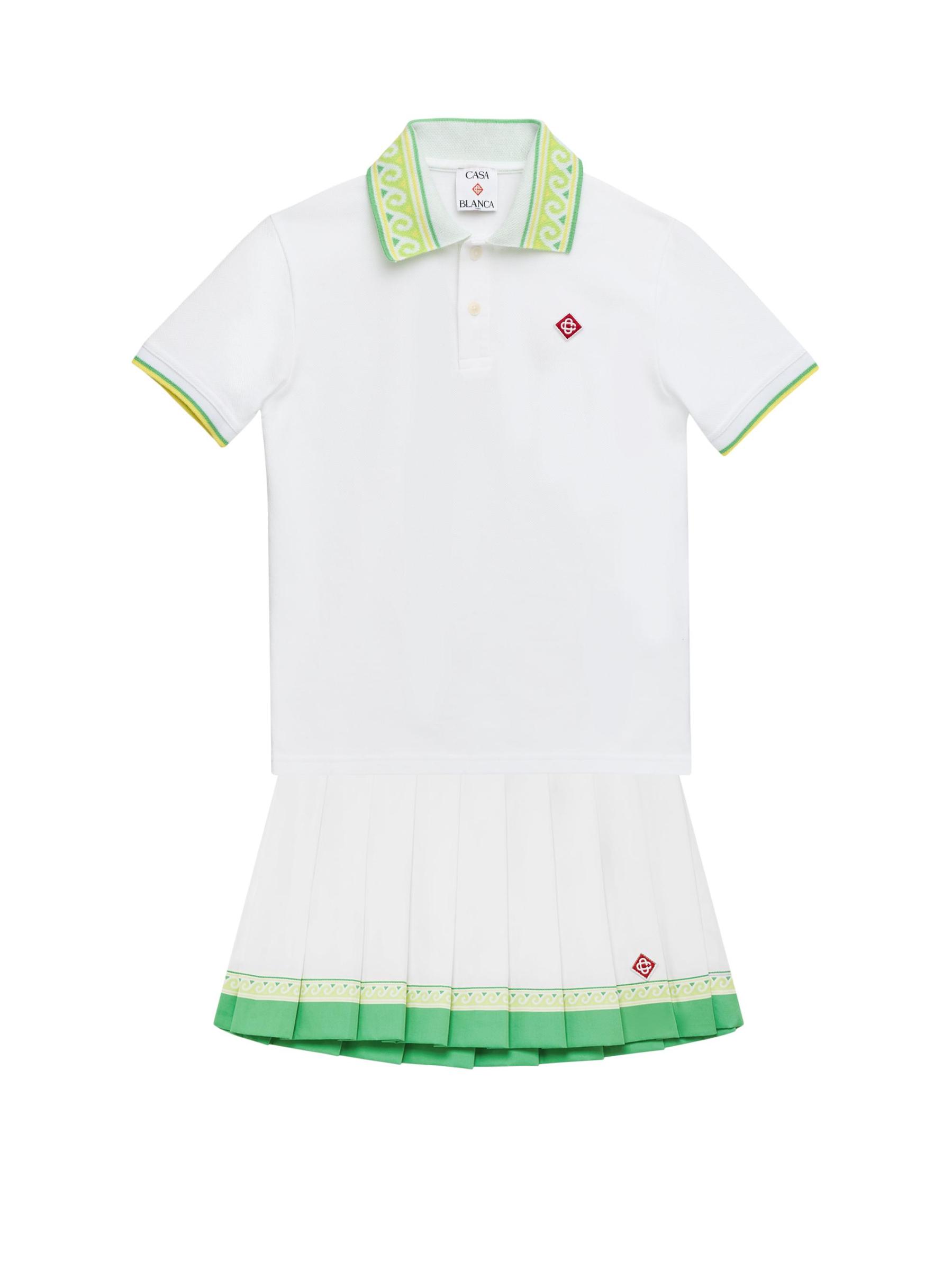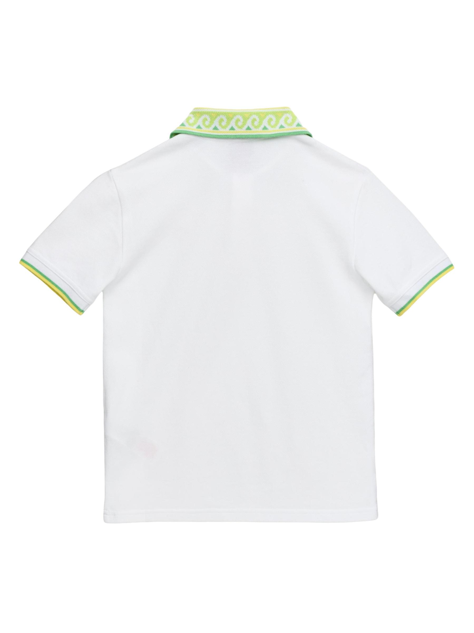 يتميز قميص بولو كازابلانكا هذا المصنوع من القطن بياقة جاكار من نسيج الغار وشرائط الذراع المخططة.