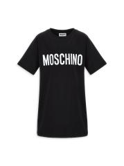 يتميز هذا الفستان ذو الرقبة المستديرة المصنوع من قطن الجيرسي بشعار موسكينو على الجهة الأمامية.