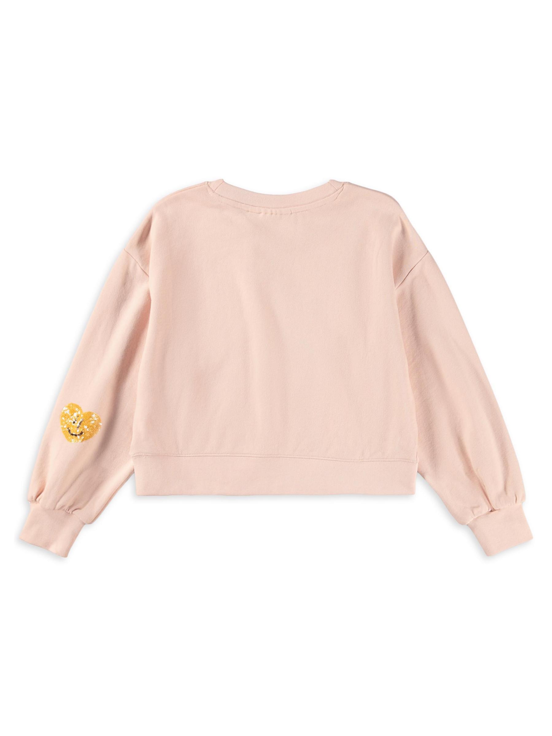 تتميّز سويت شيرت ميكي القطني برقبة مستديرة من مولو بتصميم منسدل بأكتاف منسدلة ومزيّنة بزخرفة على شكل قلب مبتسم.