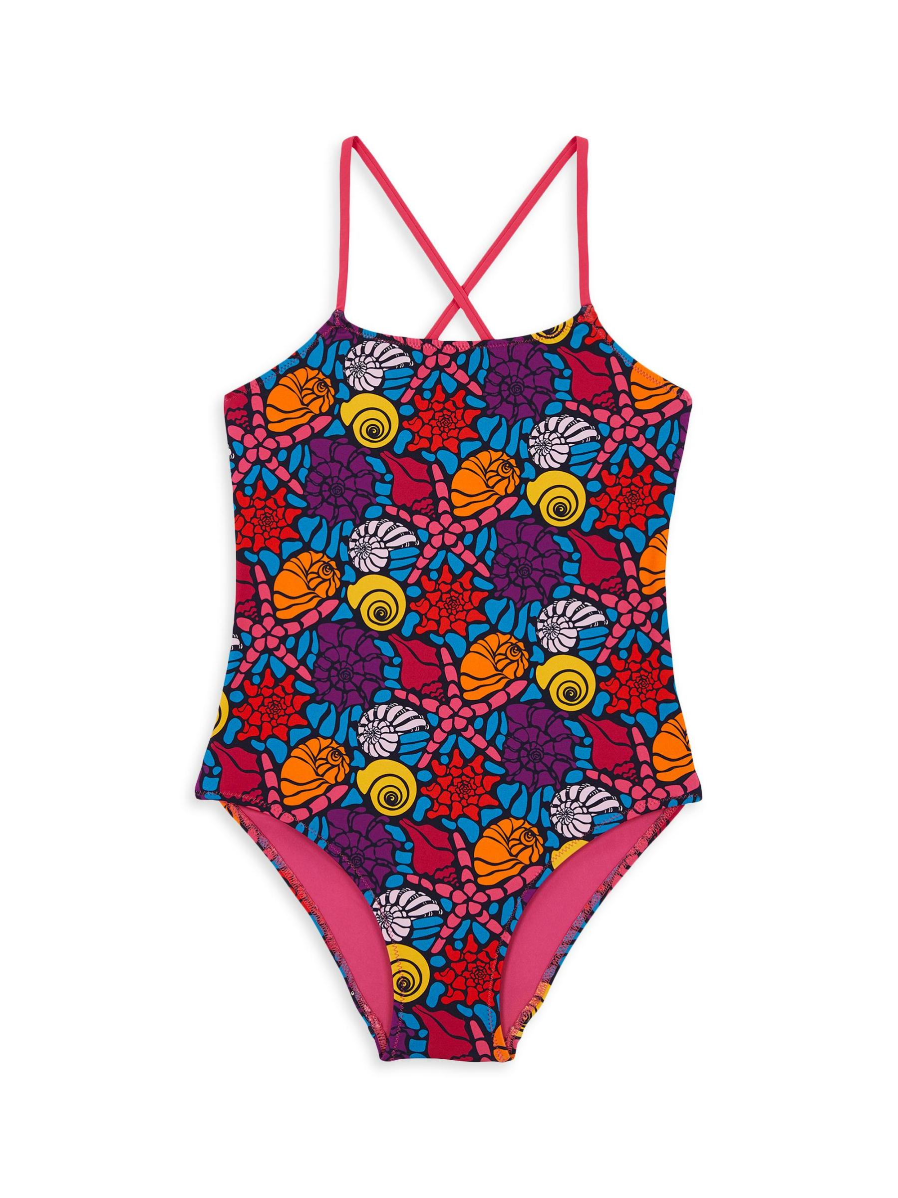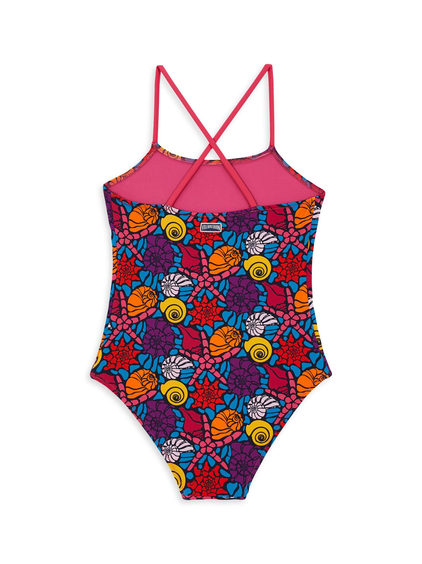 تم تزيين ملابس السباحة Noum المكونة من قطعة واحدة من Vilebrequin بنمط صدف نابض بالحياة. حزام خلفي متقاطع ينهي التصميم.