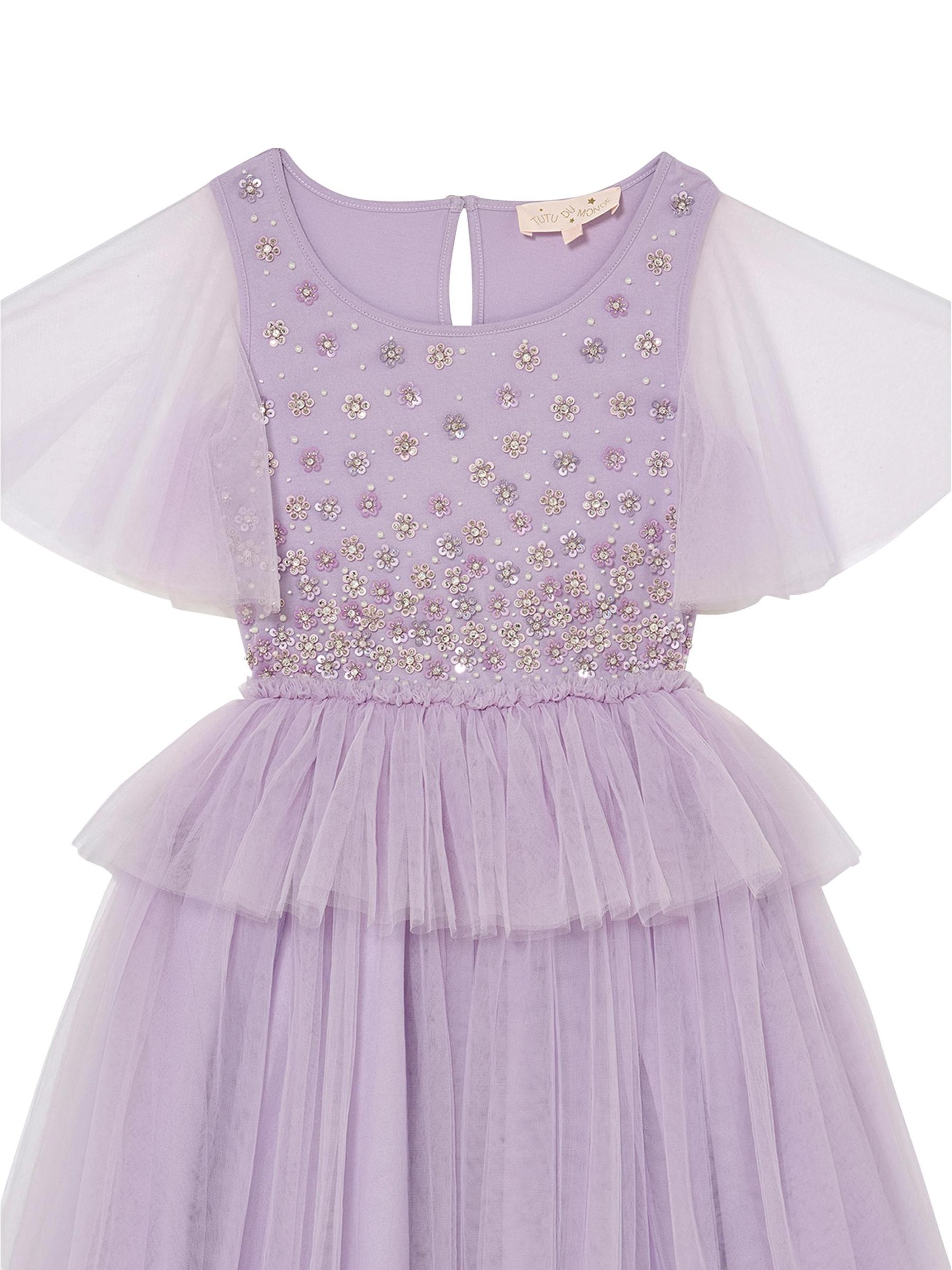 يتألق فستان أوركيد راديانس توتو من توتو دو موند بزخارف الأزهار البراقة وتنورة من التل متعدد الطبقات.رقبة مغرفة أكمام قصيرة زر خلفي للإغلاق بفتحة المفتاح قطن/نايلون/بولي أميد البطانة: قطن غسيل يدوي مستوردة