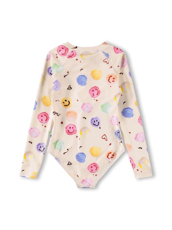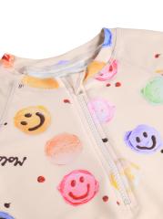 تتميّز بدلة السباحة راش جارد هذه من مولو، المصنوعة من قماش مطاطي، بطبعة وجه مبتسم وأكمام ريجلان طويلة.