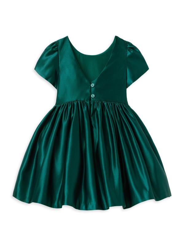 فستان ساتان بتفاصيل فيونكة للفتيات الصغيرات والفتيات في موسم الأعياد