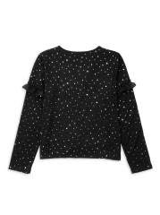تُزيّن هذه البلوزة الأنيقة المحبوكة بنقشة منقّطة باللون المعدني بزخرفة مكشكشة وتصميم ملتوي من الأمام.رقبة مستديرة أكمام طويلة مزينة بكشكشة نمط بلوفر طراز ملتوي من الأمام فيسكوز/سباندكس غسيل يدوي مستوردة