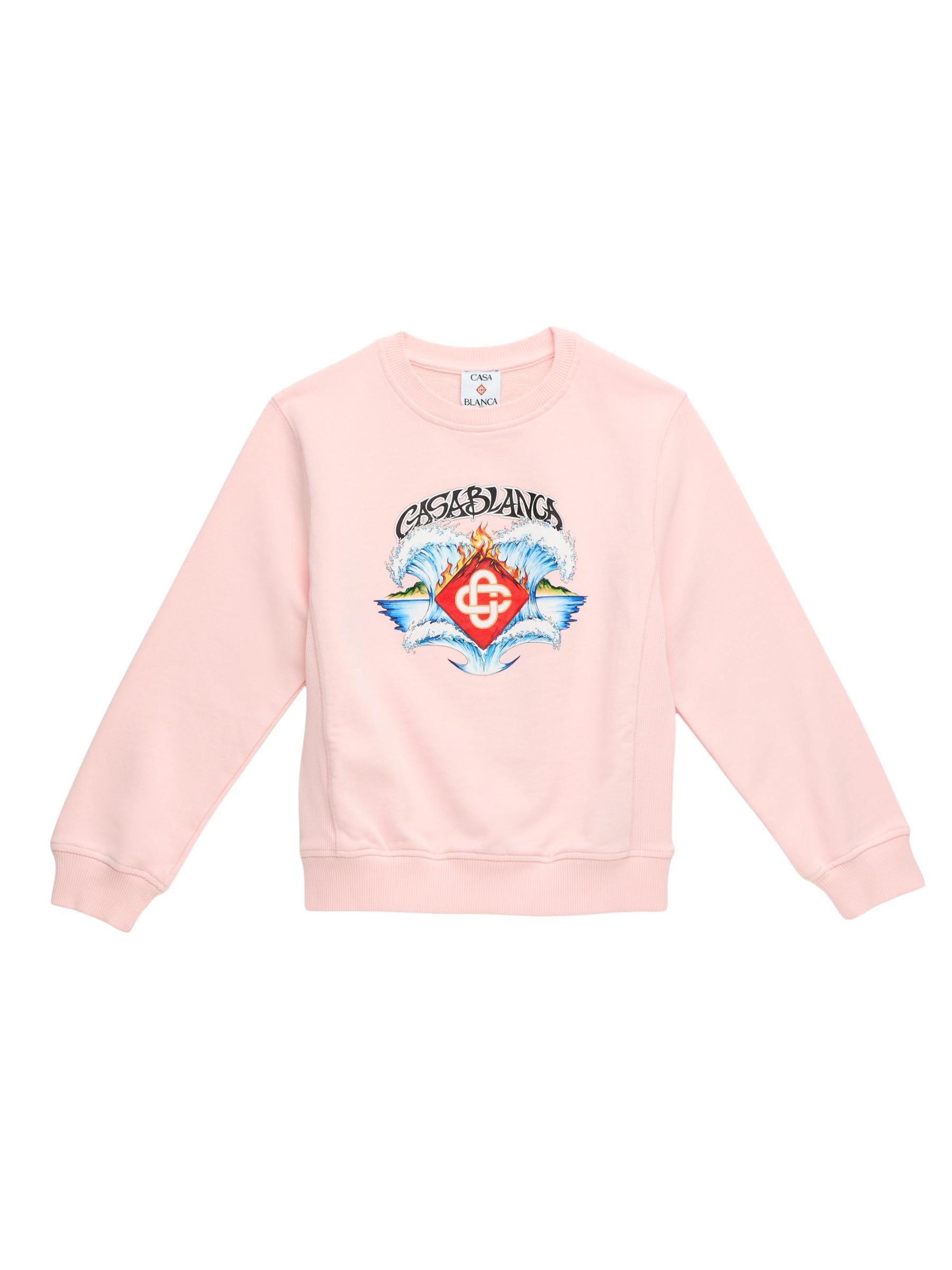 هذا السويت شيرت ذو الرقبة المستديرة من الدار البيضاء مصنوع من القطن ومزين برسومات مستوحاة من الأمواج على الجهة الأمامية.