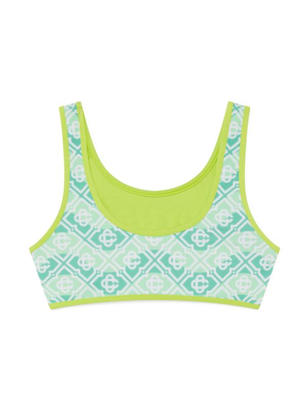 تم تزيين بيكيني الدار البيضاء بنقشة مونوغرام المتموجة. 78% بوليستر/ 22% إيلاستين. البطانة: 86% بوليستر/ 14% إيلاستين. يُغسل في الغسالة. صُنع في البرتغال.