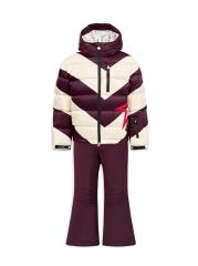 سترة سوبر موجو المنتفخة المخططة والمبطنة من Perfect Moment تعلوها قبعة مريحة ومليئة بالقماش المخملي.