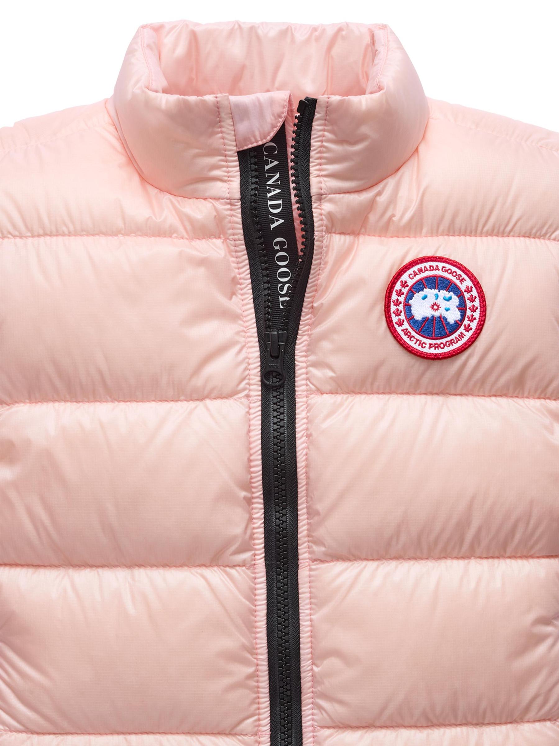 هذه السترة المنتفخة خفيفة الوزن للغاية من Canada Goose مقترنة بتفاصيل عاكسة ذات شريطين مميزين على طول الظهر. يُكمل المظهر ياقة ممتلئة بالأسفل مع واقي الذقن المصنوع من التريكو المصنوع من الجلد المدبوغ.