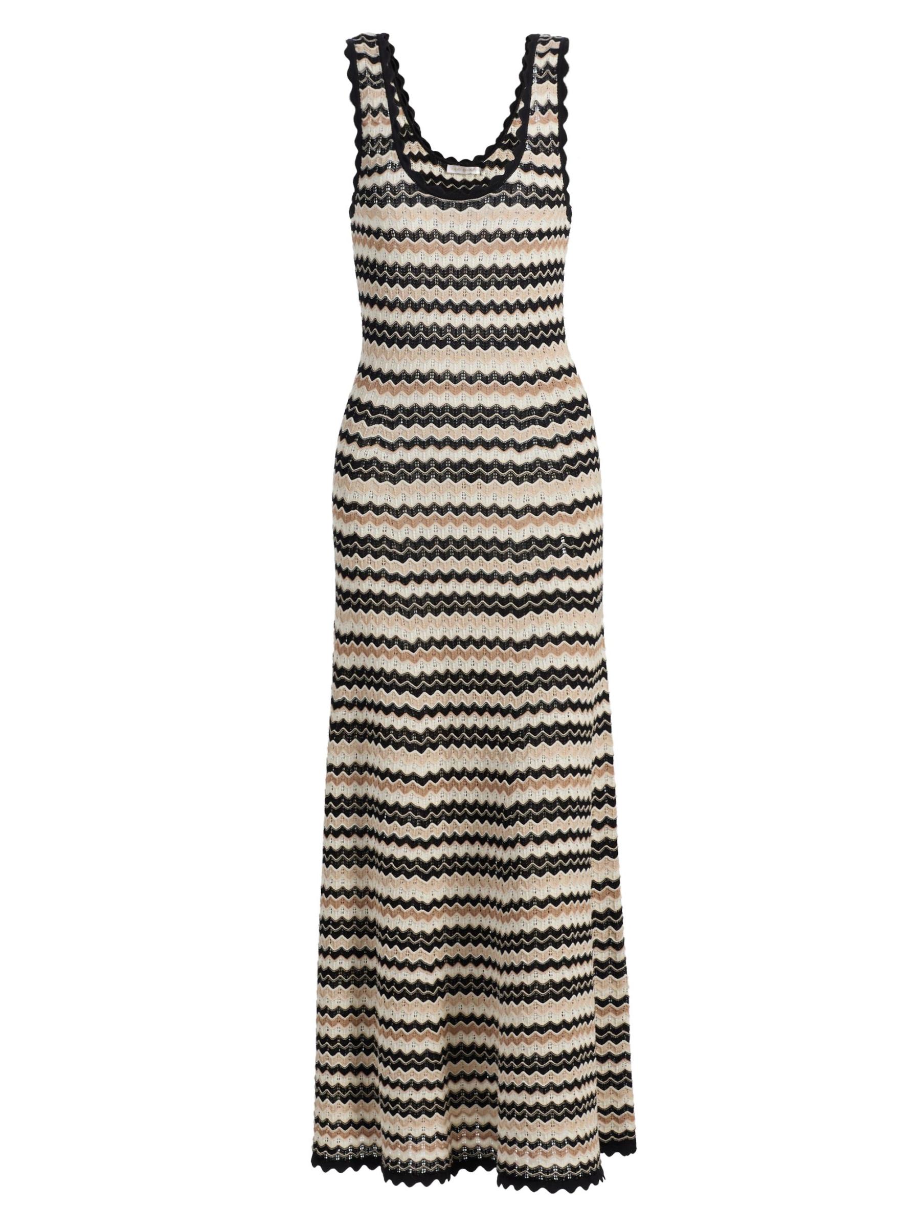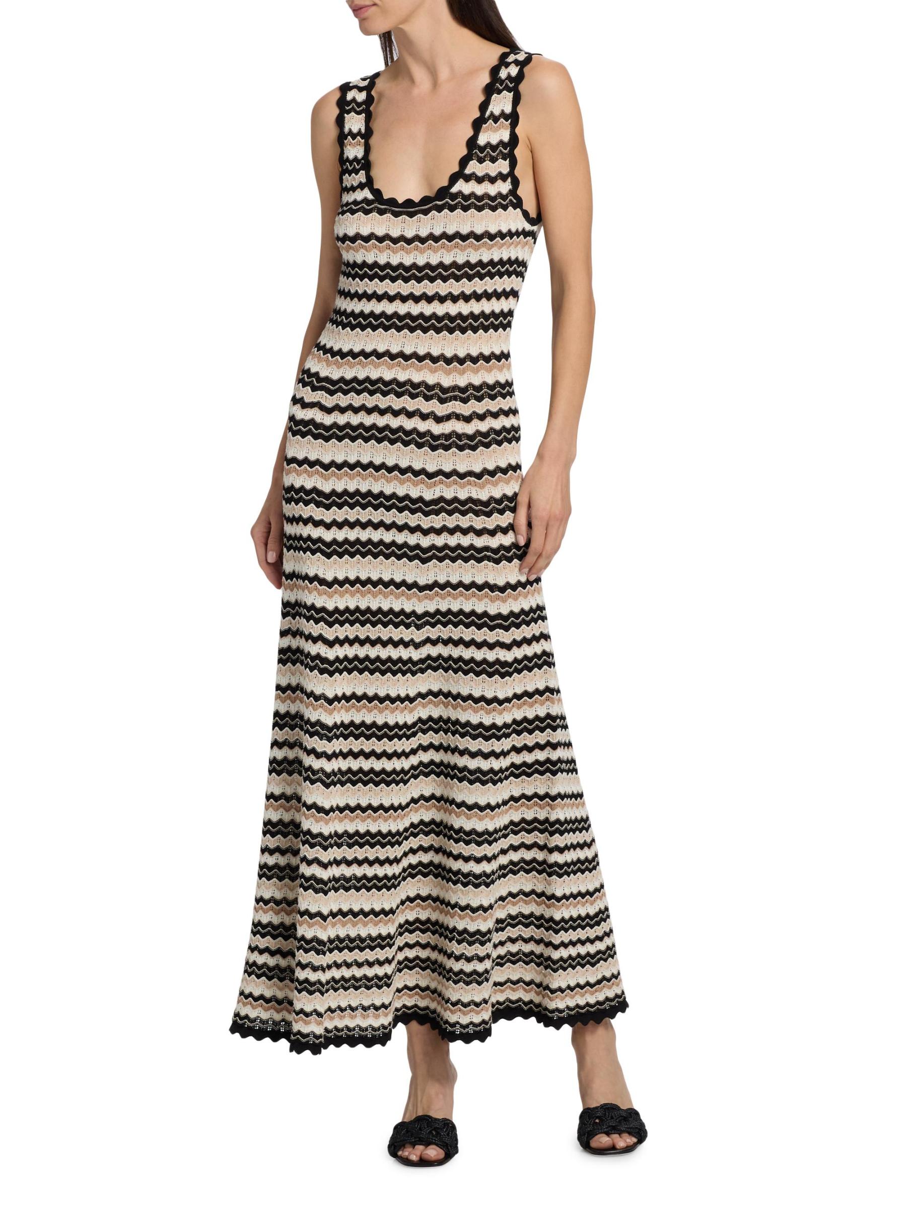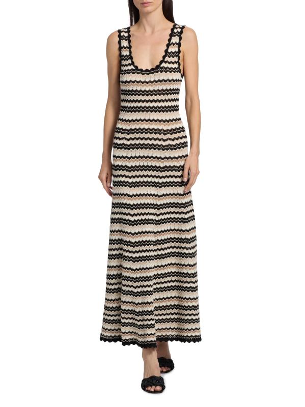صُمم فستان ليفيا ماكسي هذا من رامي بروك، المحبوك من القطن بتصميم متعرج، برقبة دائرية وحاشية صدفية.سكوبنك، سكوبباك بدون أكمام حواف صدفية تسحب قطن بنسبة 100% غسيل يدوي مستوردة