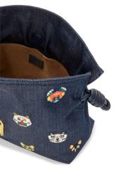 حقيبة دنيم متوسطة الحجم مطرزة بالفلامنكو للقطط من LOEWE x Louis Wain