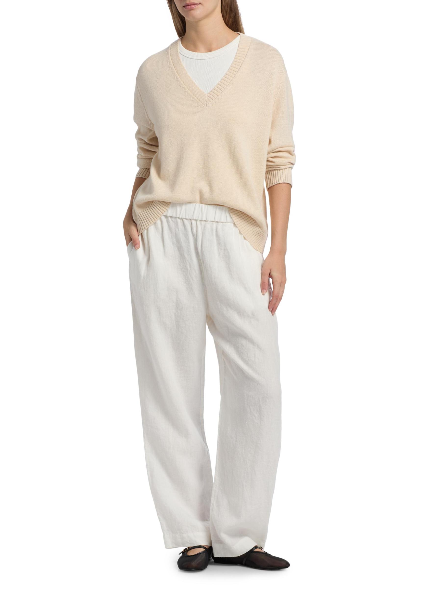 استنادًا إلى شورتات Logan الأكثر مبيعًا من Jenni Kayne، تضفي هذه النسخة من البنطال أناقة جديدة على الملابس اليومية. تم تصميم هذا الزوج الكتاني من أجل ملاءمة مريحة، ويتميز بحزام خصر مطاطي وجيوب جانبية على الدرز لتوفير أقصى درجات الراحة.