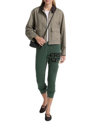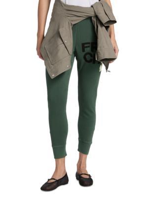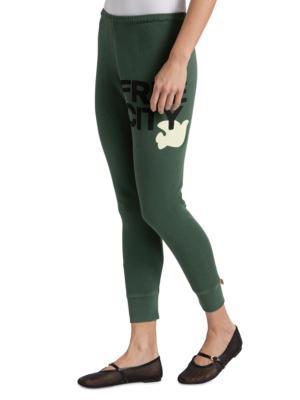 يتميز بنطال Freecity الرياضي المصنوع من القطن الناعم بشعار مطبوع على الورك وصورة ظلية ضيقة ومقصوصة.حزام خصر برباط أساور مُحاكة قطن بنسبة 100% يُغسل في الغسالة صُنع في الولايات المتحدة الأمريكية