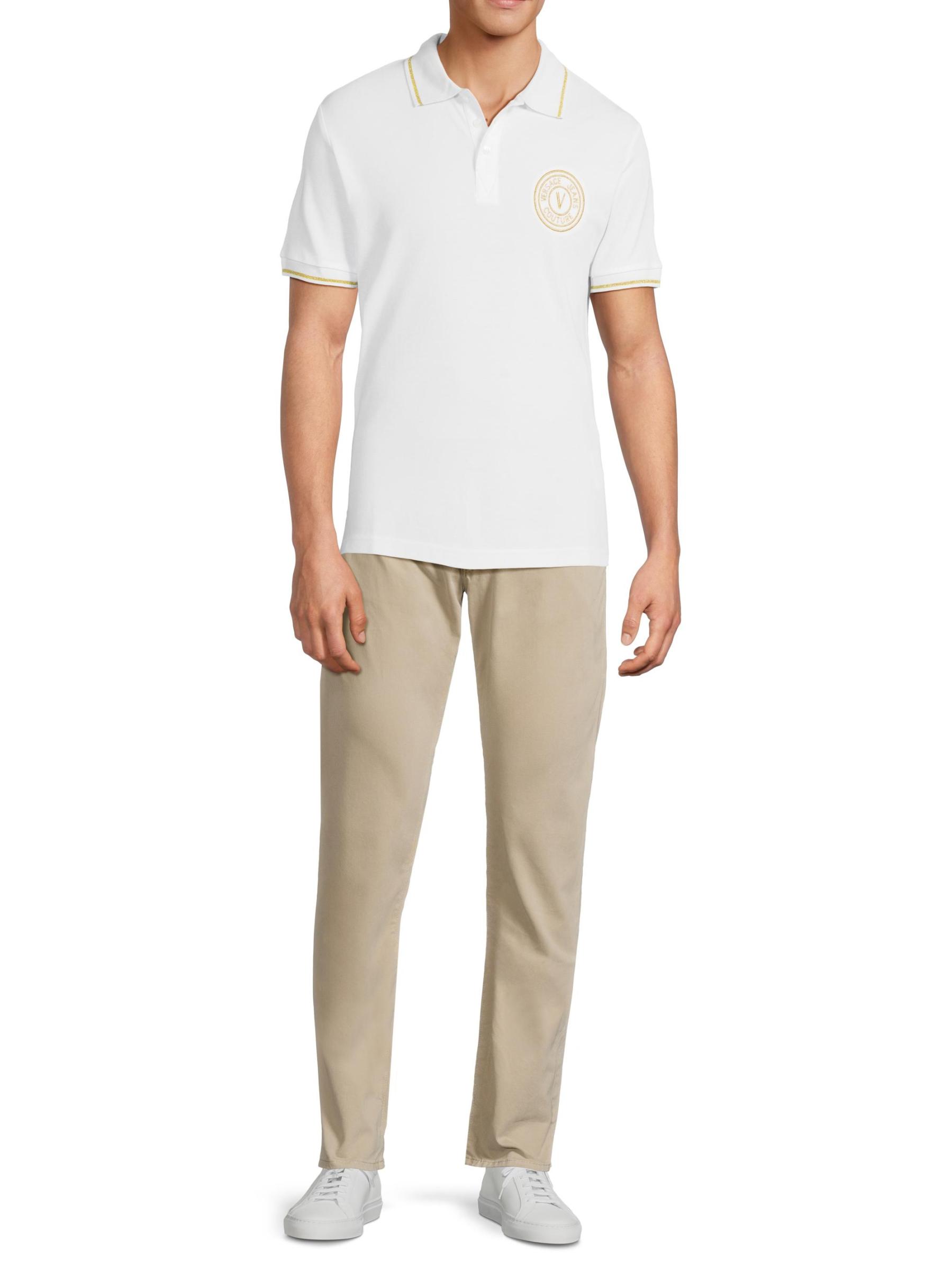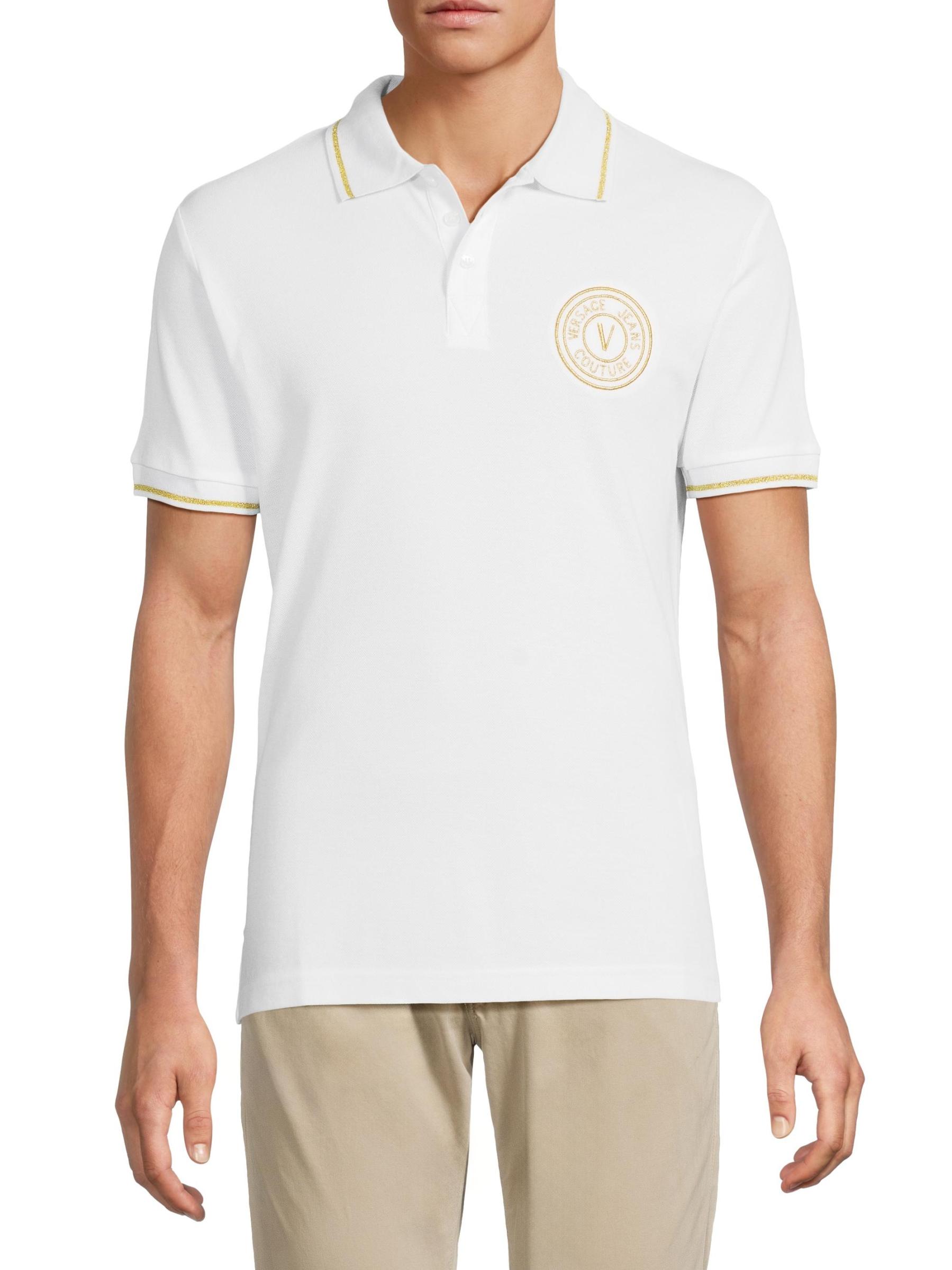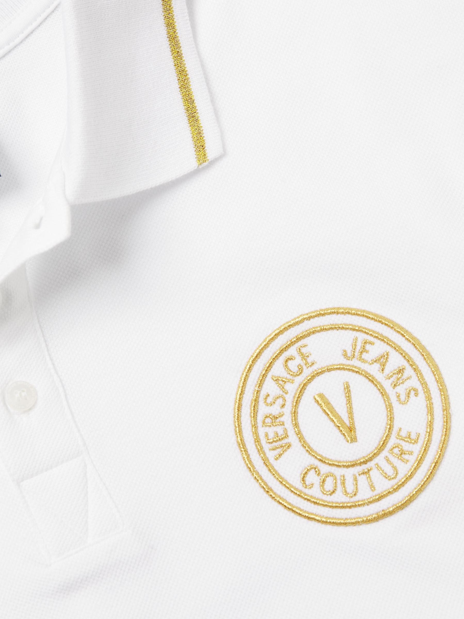 صُمم قميص بولو فيرساتشي جينز كوتور هذا من القطن المحبوك بالأنابيب المعدنية وشعار الشعار على الصدر.
