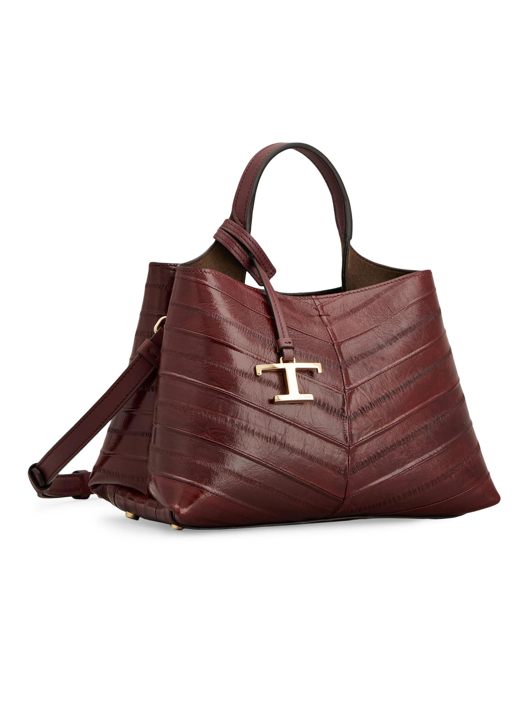 هذه الحقيبة ذات المقبض العلوي من Tod's مصنوعة من الجلد بمظهر ثعبان البحر وتتميز بقلادة على شكل حرف T وحزام كتف قابل للإزالة وجزء داخلي مع جزئين يفصل بينهما جيب بسحّاب.