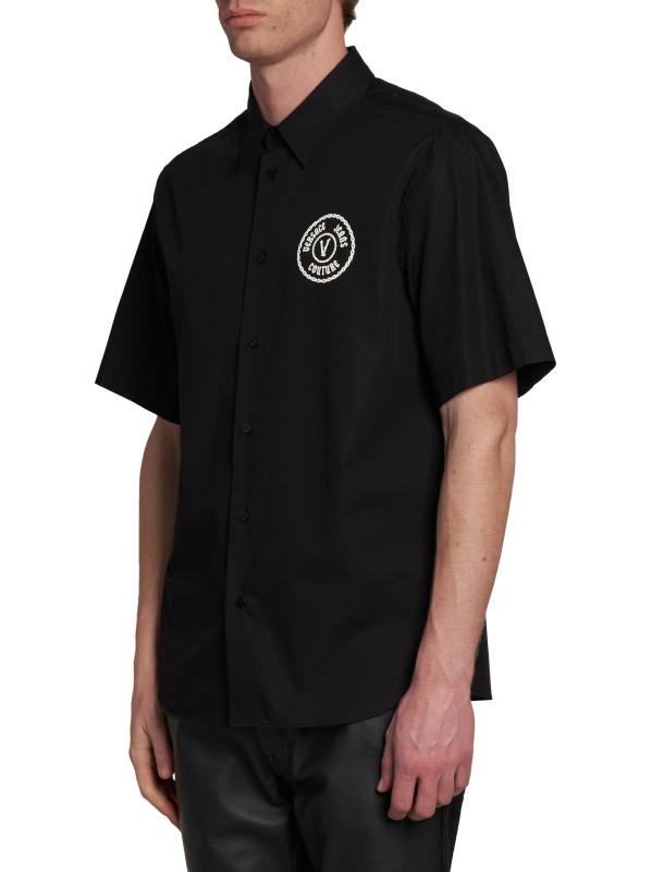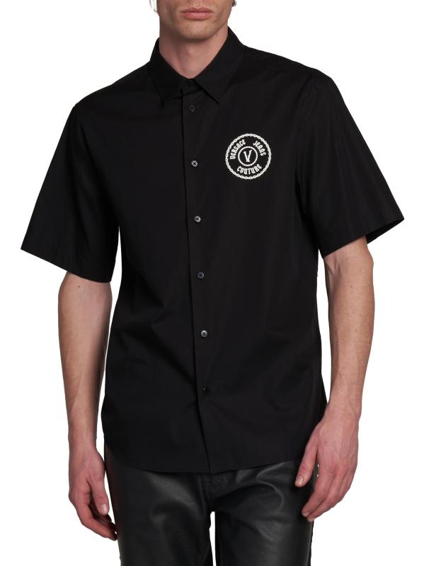 تُزيّن رقعة الشعار المطرّزة على صدر هذا القميص من فيرساتشي جينز كوتور بأزرار أمامية. مصنوع من القطن الناعم، ويوفر التصميم ذو الأزرار الأمامية مظهرًا كلاسيكيًا.ياقة مدببة أكمام قصيرة إغلاق بأزرار أمامية قطن بنسبة 100% يُغسل في الغسالة صُنع في إيطاليا