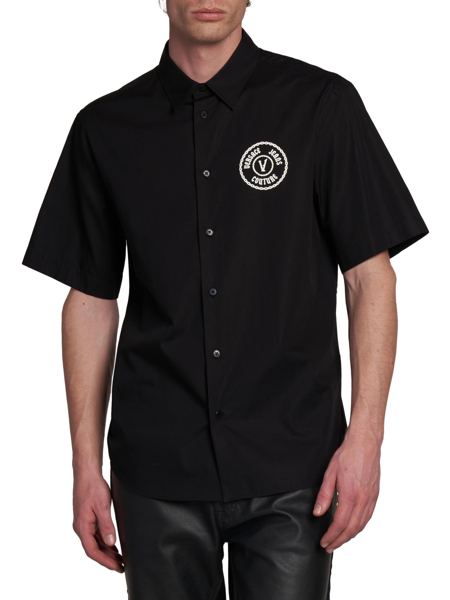 تُزيّن رقعة الشعار المطرّزة على صدر هذا القميص من فيرساتشي جينز كوتور بأزرار أمامية. مصنوع من القطن الناعم، ويوفر التصميم ذو الأزرار الأمامية مظهرًا كلاسيكيًا.