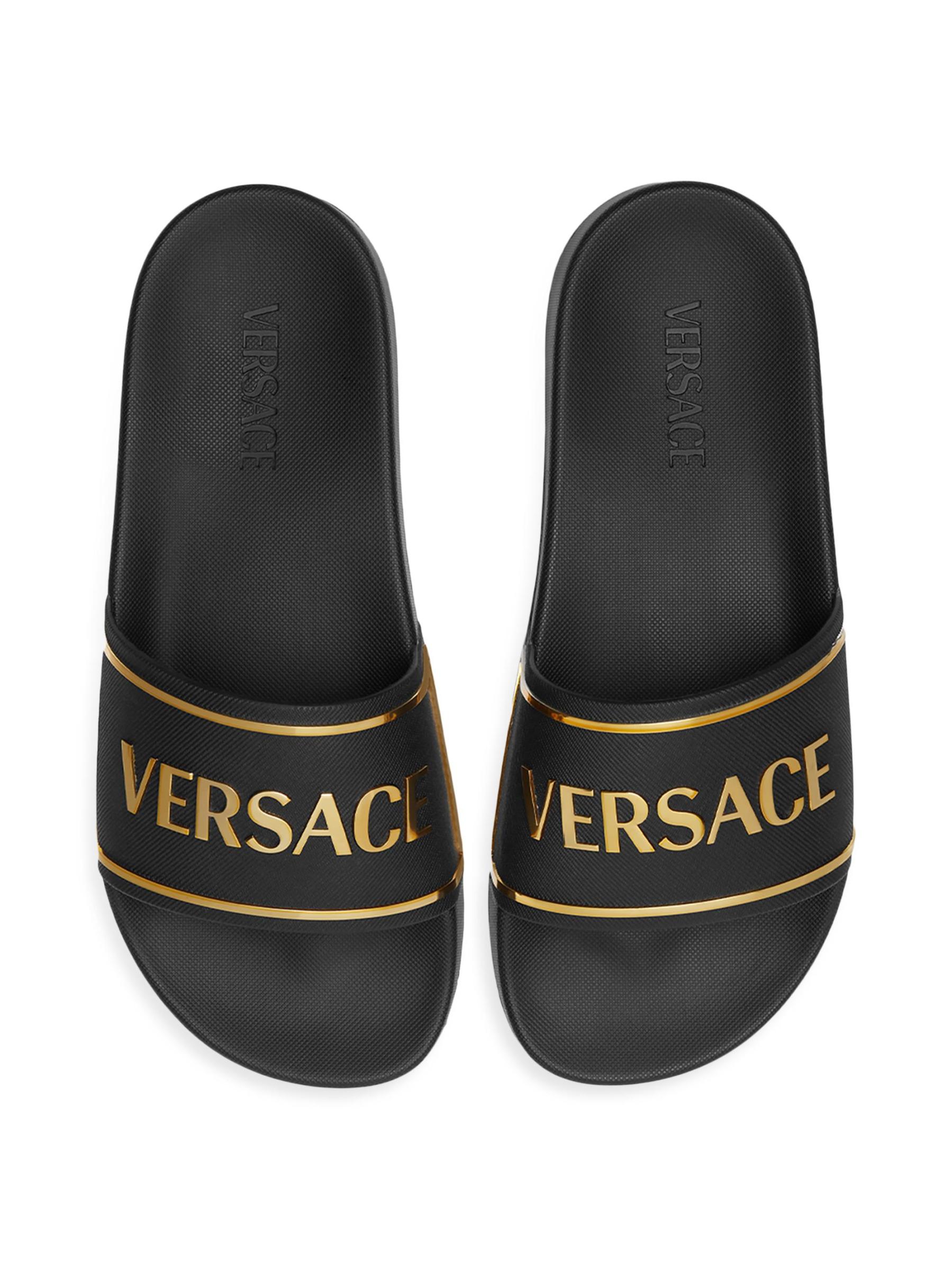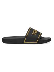 هذا الصندل المنزلق من فيرساتشي مصنوع من المطاط ومزين بشعار الماركة على الجزء العلوي.