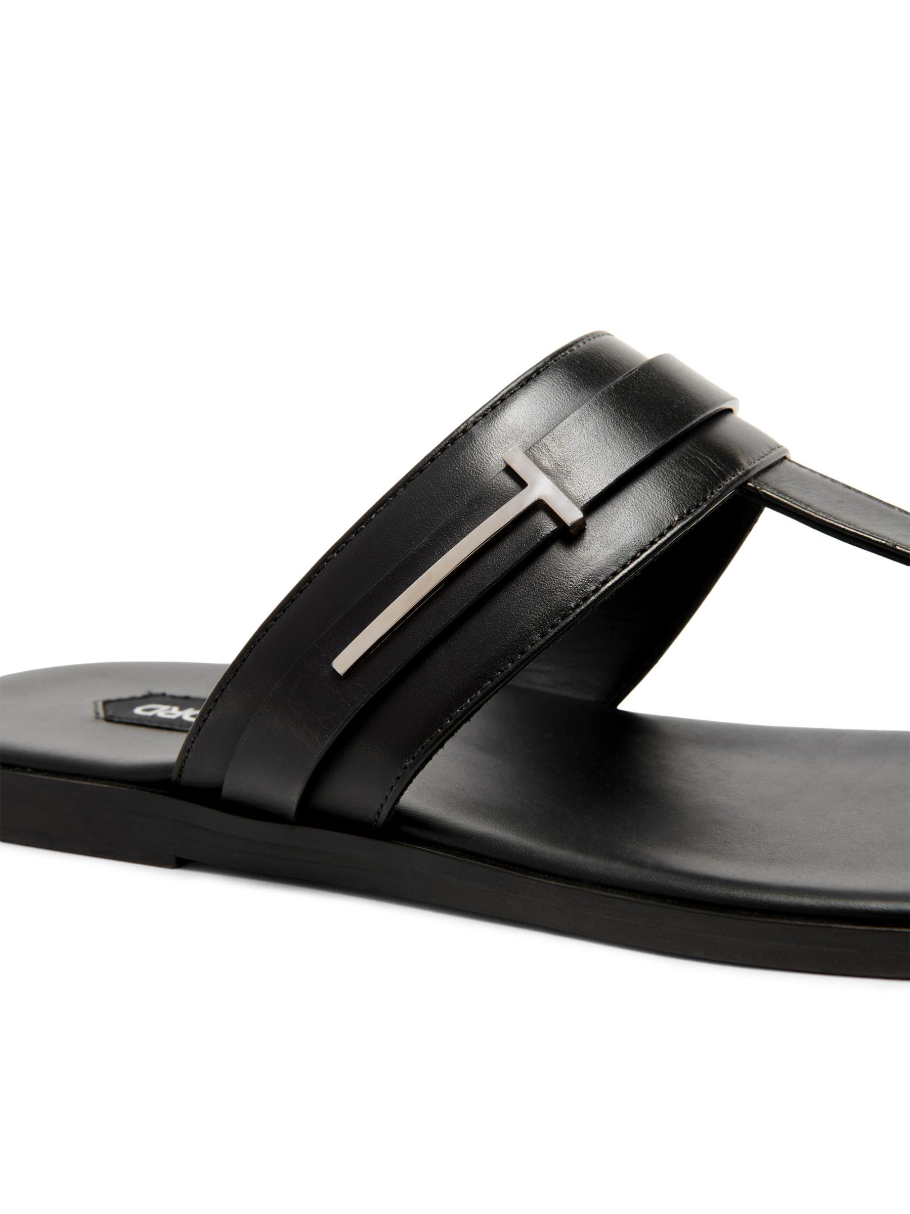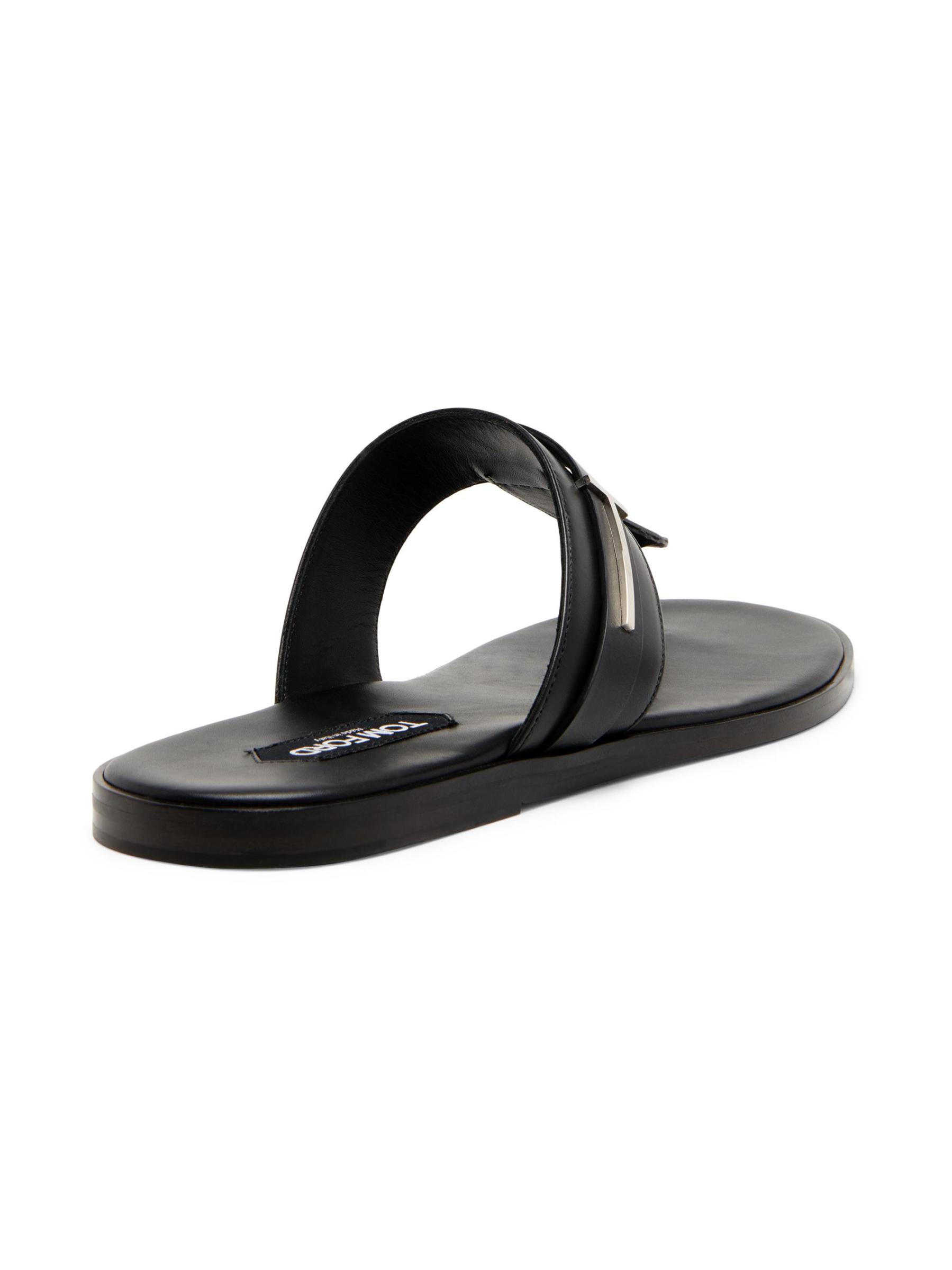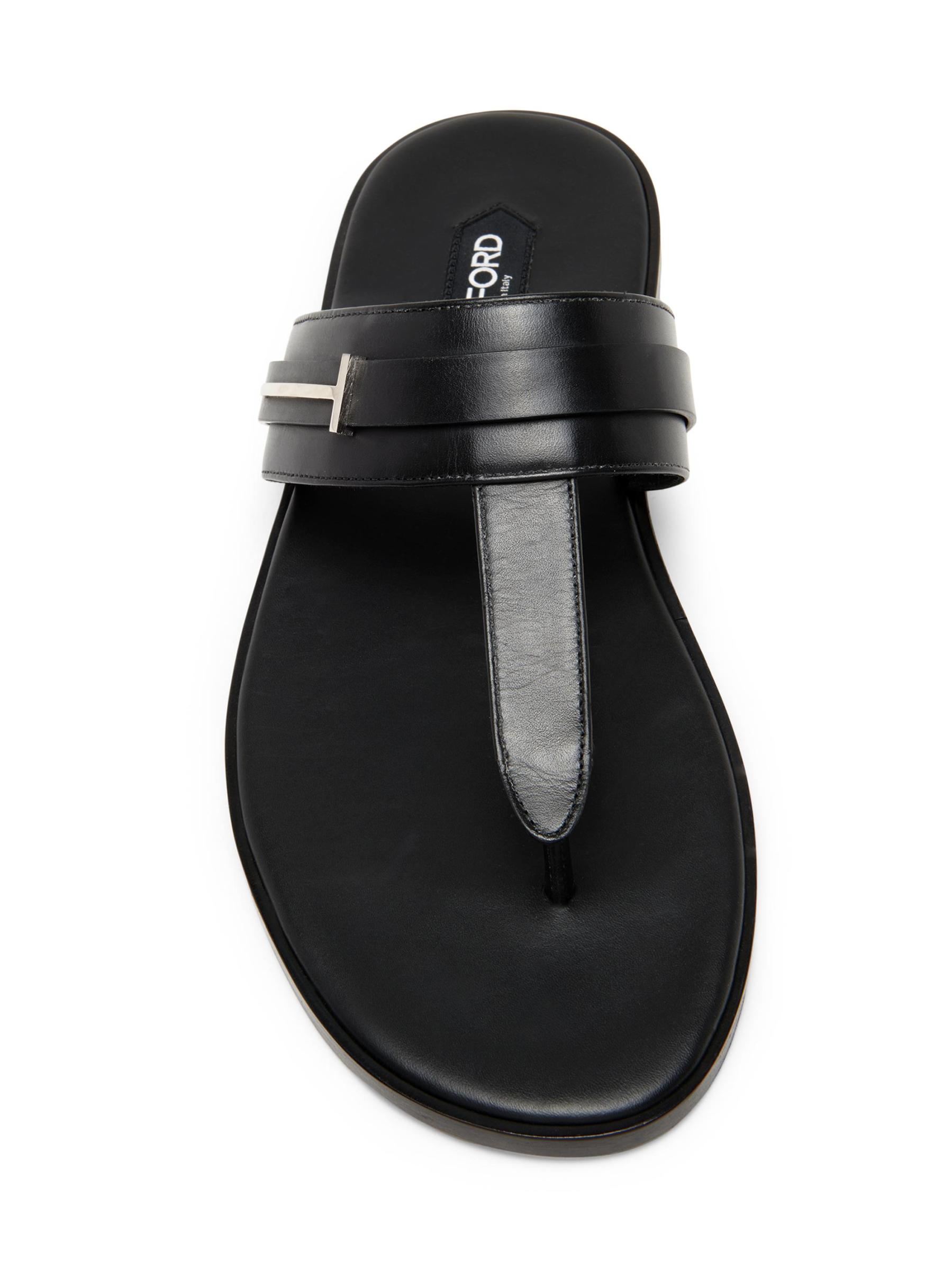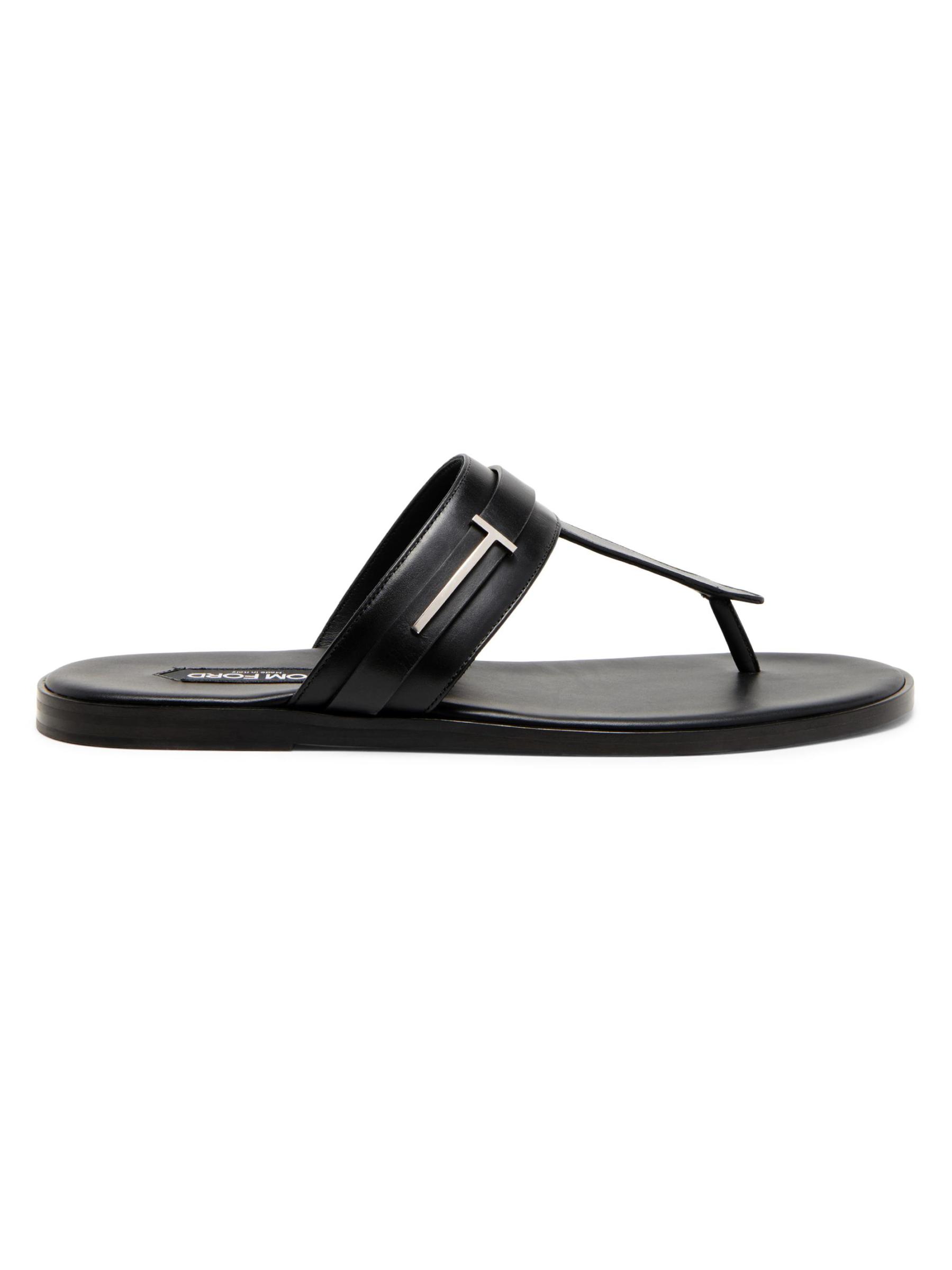 صُنع صندل ثونغ من توم فورد من الجلد الإيطالي ويتميز بتفاصيل على شكل حرف T لإضفاء لمسة راقية. يضمن النعل المصنوع من الجلد والمطاط الراحة والمتانة.