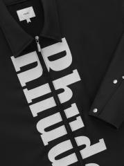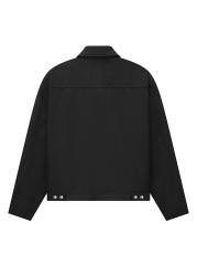 تتميز سترة العمل Rhude المصنوعة من صوف التويل الجبردين بشعار العلامة التجارية وهي مصنوعة في الولايات المتحدة الأمريكية. تتميّز هذه القطعة بياقة واسعة وسحّاب أمامي للإغلاق.