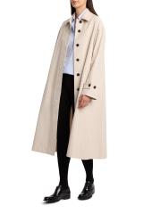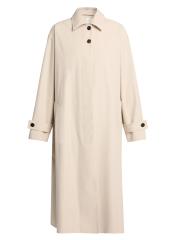 صُنع معطف Lolana من The Row من مزيج تقني في صورة ظلية طويلة. يتميّز هذا الطراز بياقة واسعة وجيوب جانبية مائلة وأزرار أمامية مخفية.