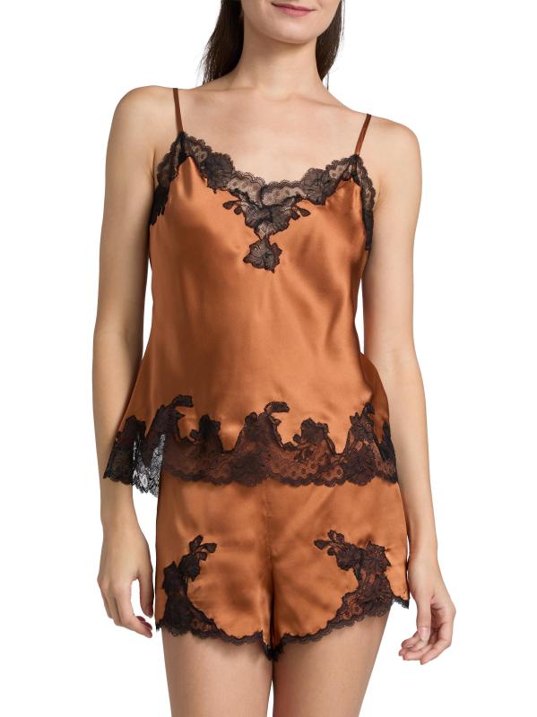 من مجموعة لوليتا. صُنع القميص القصير والسراويل القصيرة من Josie Natori من الحرير ومزين بدانتيل شانتيلي. حرير بنسبة 100%. الحافة: 100% نايلون. غسيل يدوي. مستوردة.