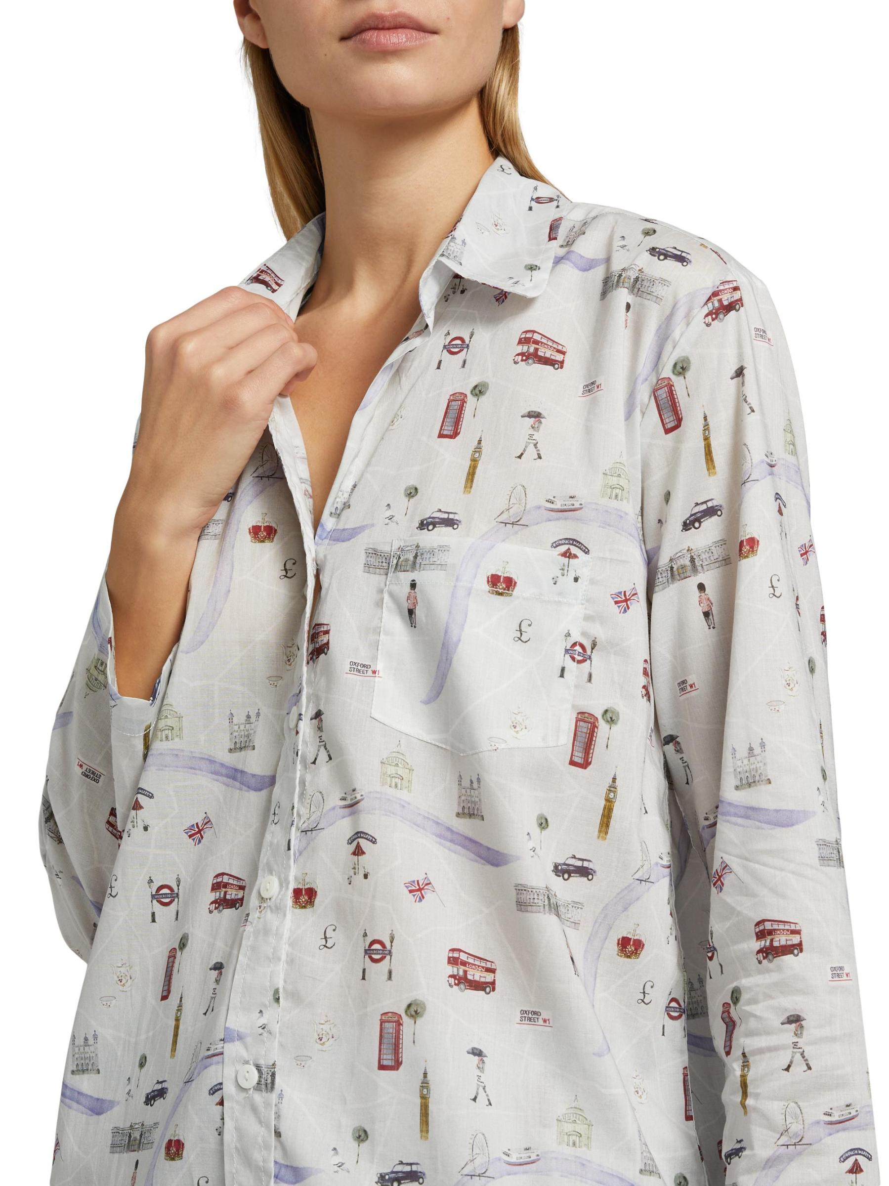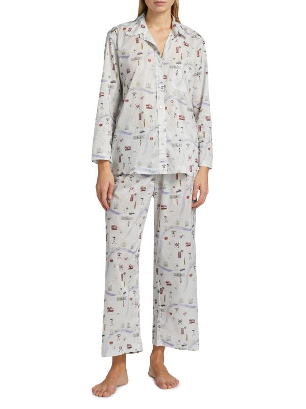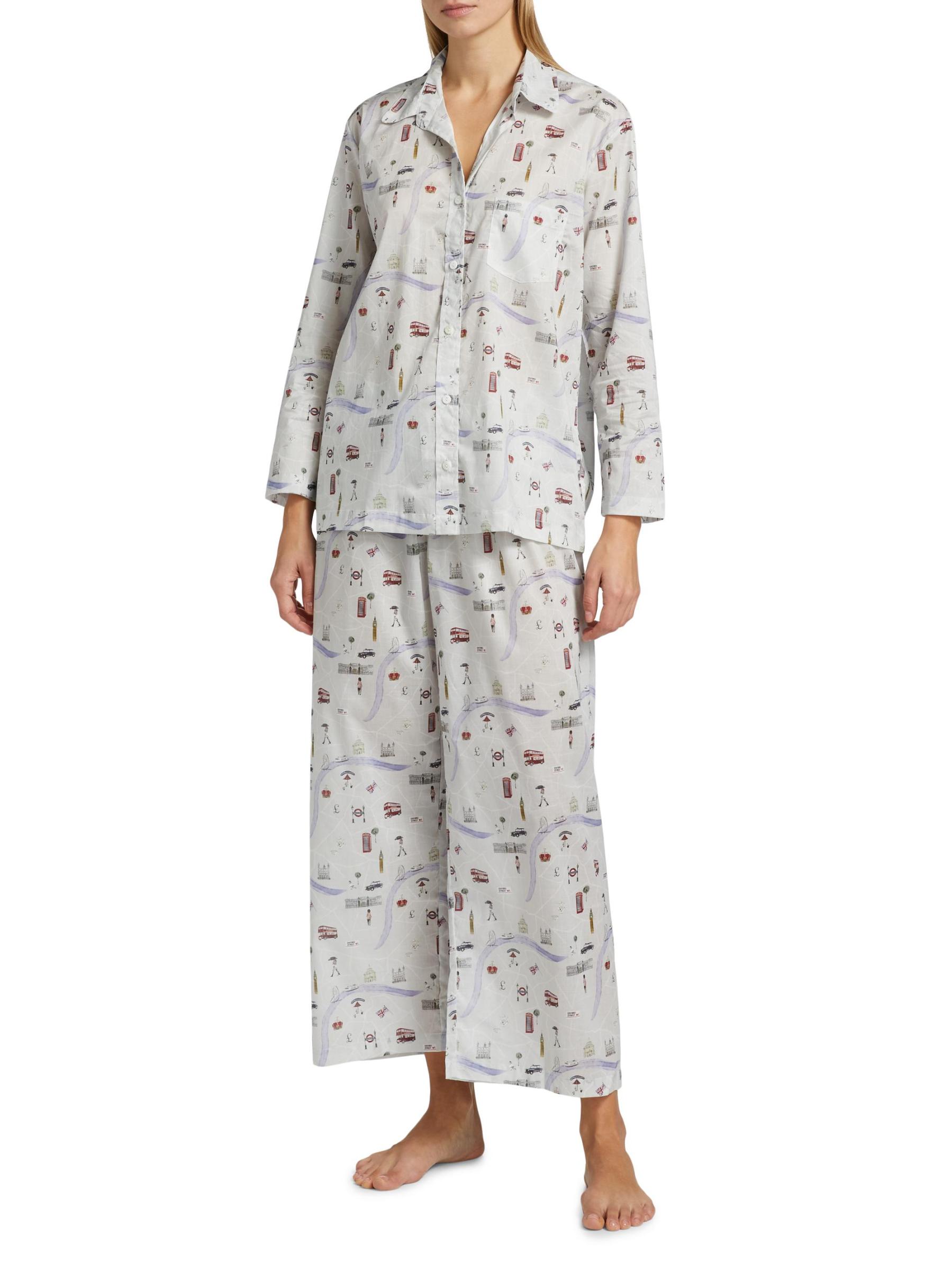 تتميز هذه البيجامات المصنوعة من القطن من Pour Les Femmes بطبعة لندن. قميص بأزرار أمامية يمكن ارتداؤه مع بنطال مريح برباط. مصنوع من القطن بنسبة 100%. يُغسل في الغسالة. مستوردة.