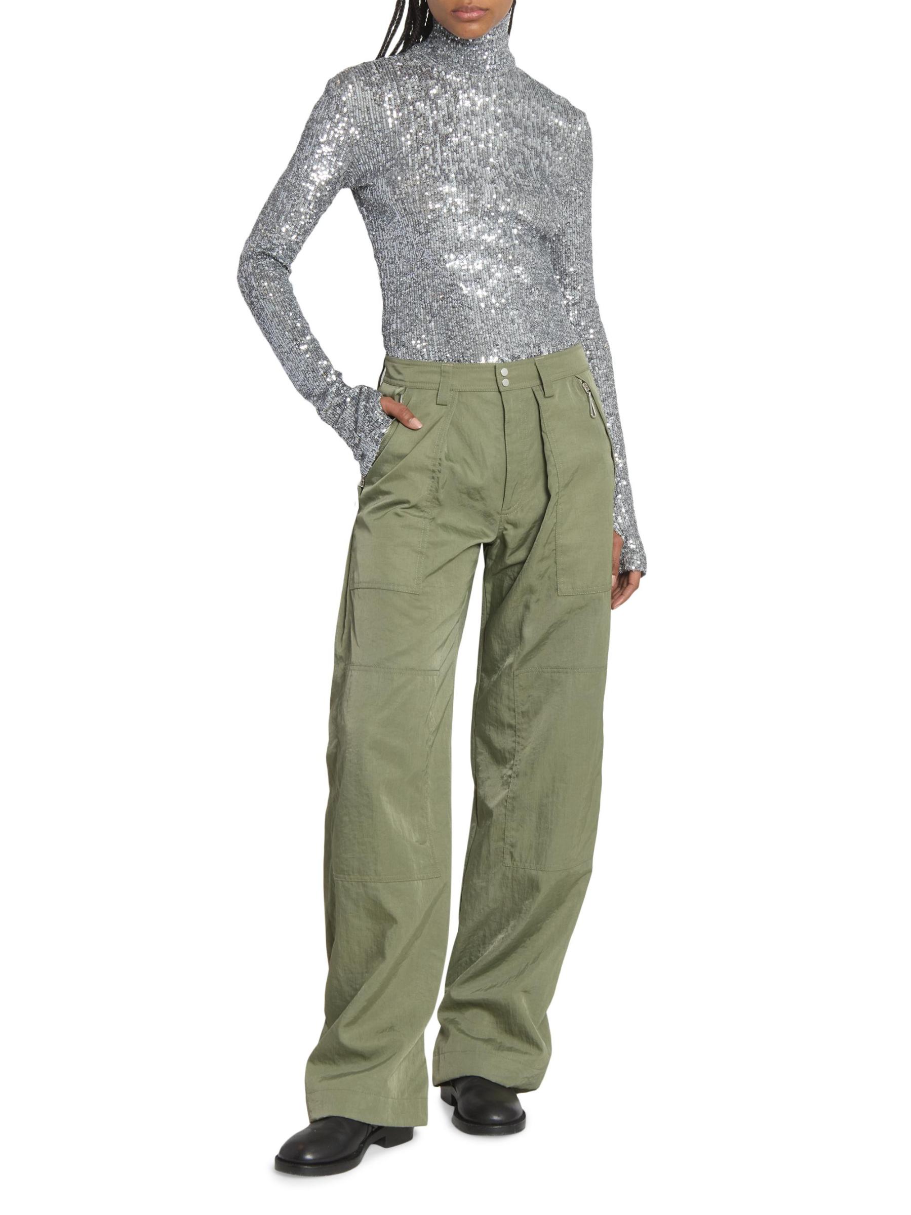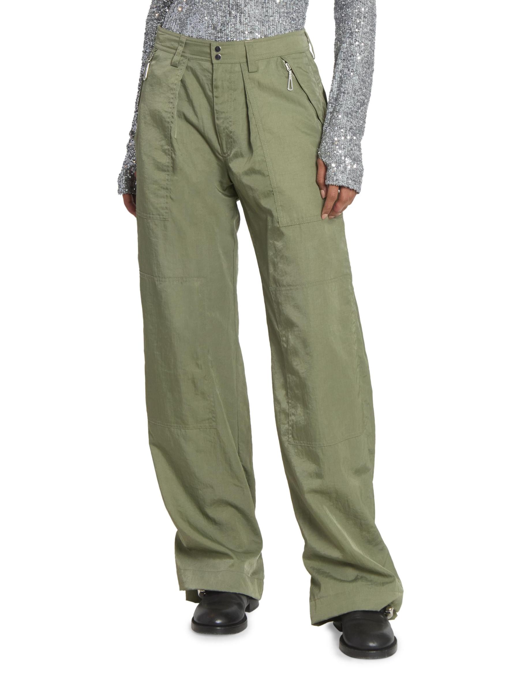 يتميّز بنطال رابان، الذي صُمم ليمنحك مظهرًا فضفاضًا، بجيوب واسعة وتفاصيل درزات.حلقات الحزام جيوب جانبية بسحّاب جيوب خلفية بأزرار قابلة للطي سحّاب، زر للإغلاق 100% بولي أميد البطانة: 100% قطن تنظيف جاف مستوردة