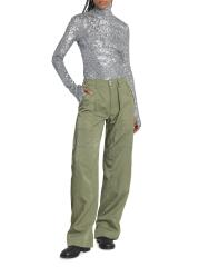 ساق فضفاضة قياسات النموذج: بطول 5 أقدام و10 بوصات ترتدي العارضة مقاس 4 في الولايات المتحدة