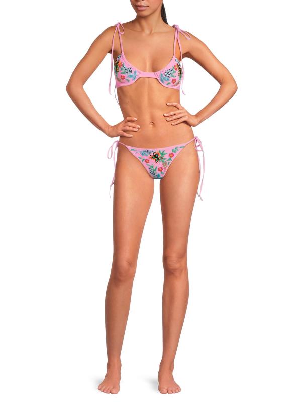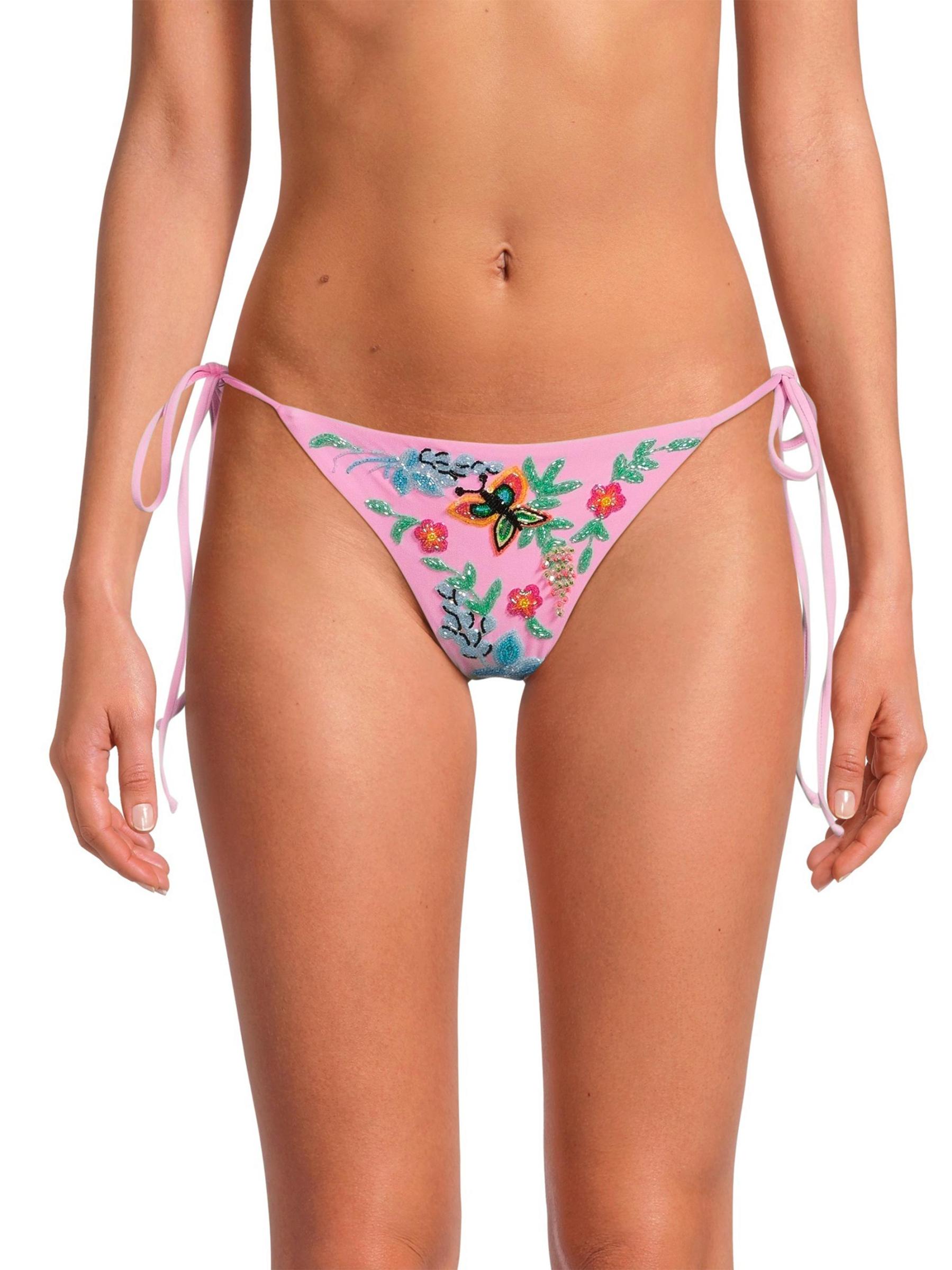 تتميّز هذه السراويل البكيني ذات التغطية المتوسطة من Oceanus بتطريز مطرّز يدويًا متلألئًا مزينًا بالخرز اليدوي، وذلك بفضل تصميمها بأربطة جانبية.