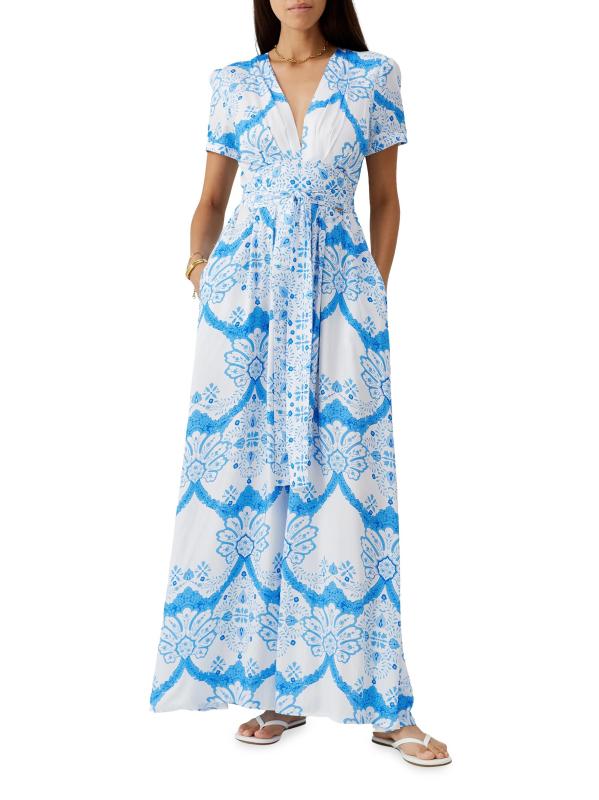 فستان لو فلورال ماكسي برقبة على شكل حرف v