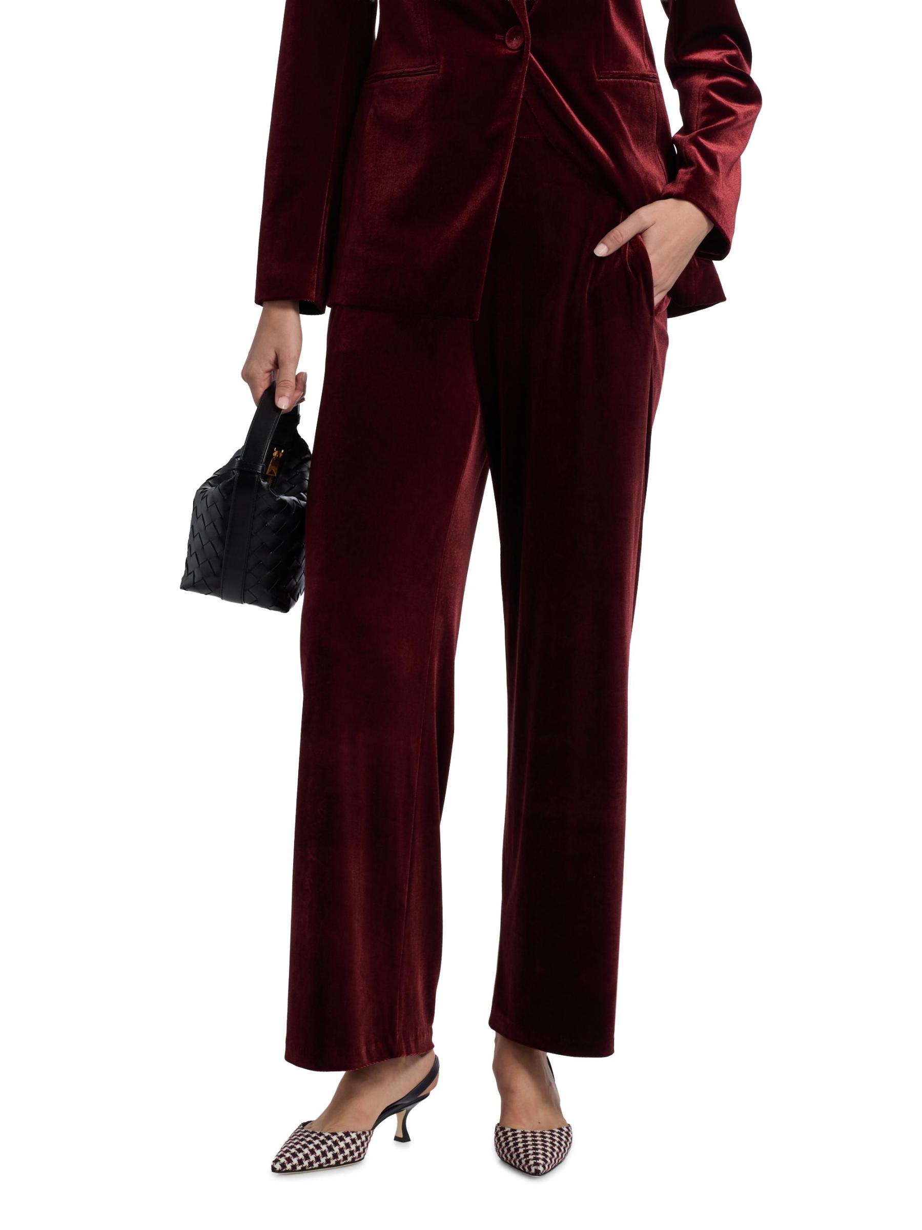 بنطال Lucia ذو الأرجل المستقيمة من إيلي تاهاري مصنوع من المخمل ومصمم بخصر مطاطي وجيوب جانبية.