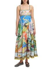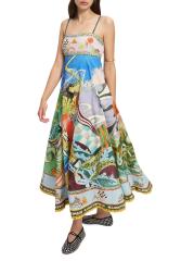 يتميز فستان Alémais الطويل هذا المصنوع من الكتان بطبعة Lucky Pace الجريئة متعددة الرسومات. تضفي الياقة المربعة والخصر الإمبراطوري والتنورة الدائرية شكلًا مرحًا على هذا النمط.رقبة مربعة أحزمة سباغيتي قابلة للتعديل خصر إمبراطوري لوحة خلفية مطرزة تسحب كتان تنظيف جاف مستوردة