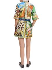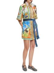 يتميز فستان Alémais المصنوع من الكتان بطبعة Lucky Pace الجريئة متعددة الرسومات. تضفي الياقة المدببة والحزام المربوط ذاتيًا والجيوب الجانبية ذات الدرزات مزيدًا من البنية والشكل لهذا النمط ذو الأزرار الأمامية.