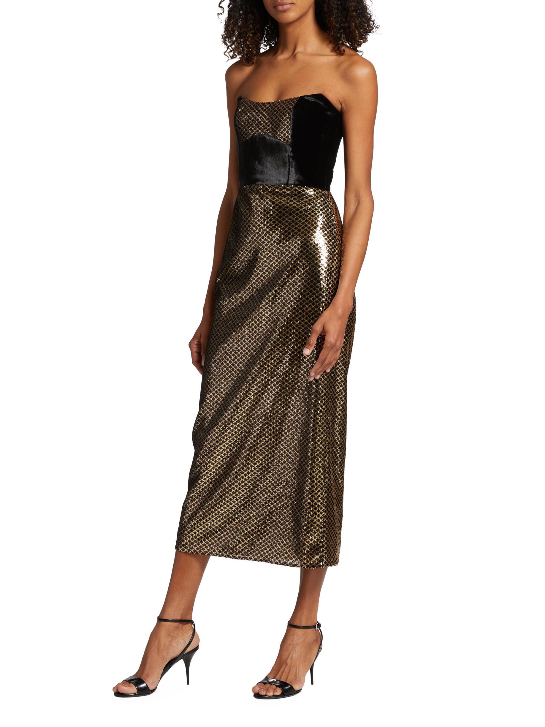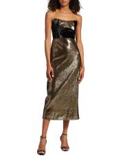 فستان لونا متوسط الطول من المخمل والترتر بدون حمالات