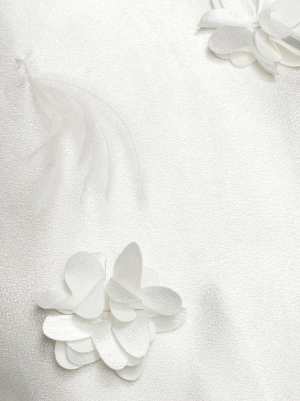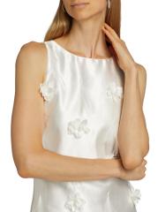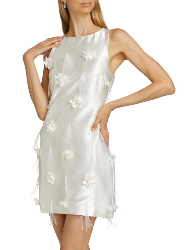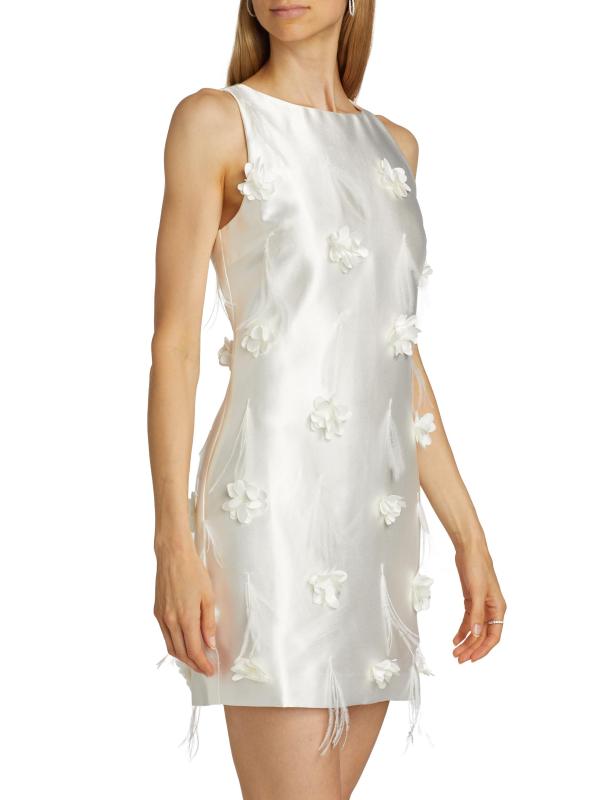 من مجموعة لا غاليريا. يتميز فستان Lunaria الصغير من Elliatt المصنوع من الساتان الفاخر برقبة قارب عالية وقصة بلا أكمام وتصميم خفيف على شكل حرف A. هذه القطعة الرومانسية مزينة بزخارف نباتية ولمسات من الريش.