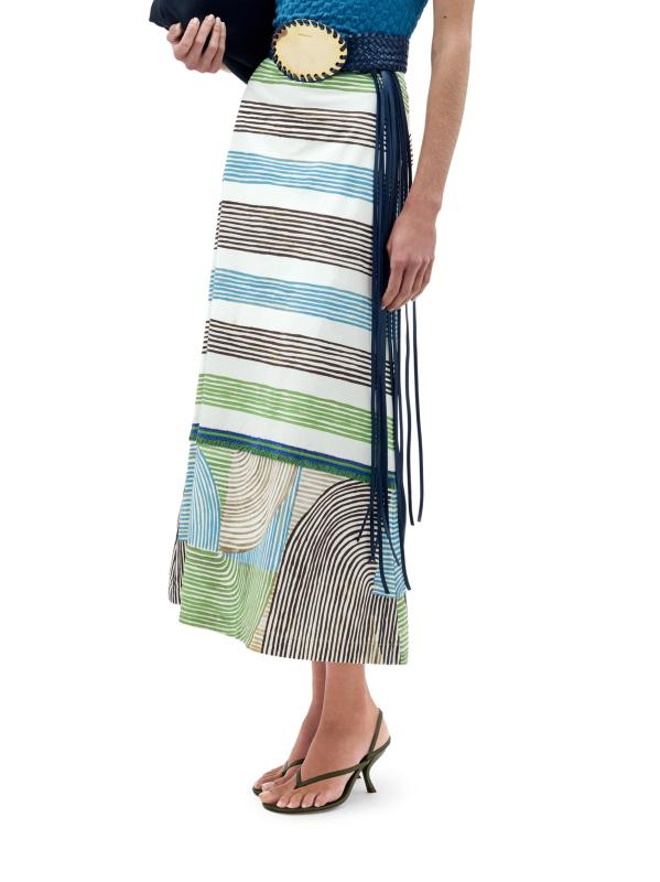 تنورة Lyla المتوسطة هذه من Silvia Tcherassi مصنوعة من القطن وتتميز بطبعة مخططة ومقصوصة في صورة ظلية على شكل حرف A.