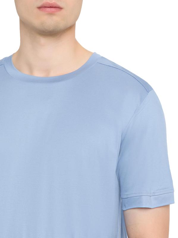 هذا التيشيرت ذو الرقبة المستديرة من زيمرلي مصنوع من مادة الليوسيل القابلة للتمدد بمقاس كلاسيكي.رقبة مستديرة أكمام قصيرة تسحب لايوسيل 100% يُغسل في الغسالة صُنع في سويسرا