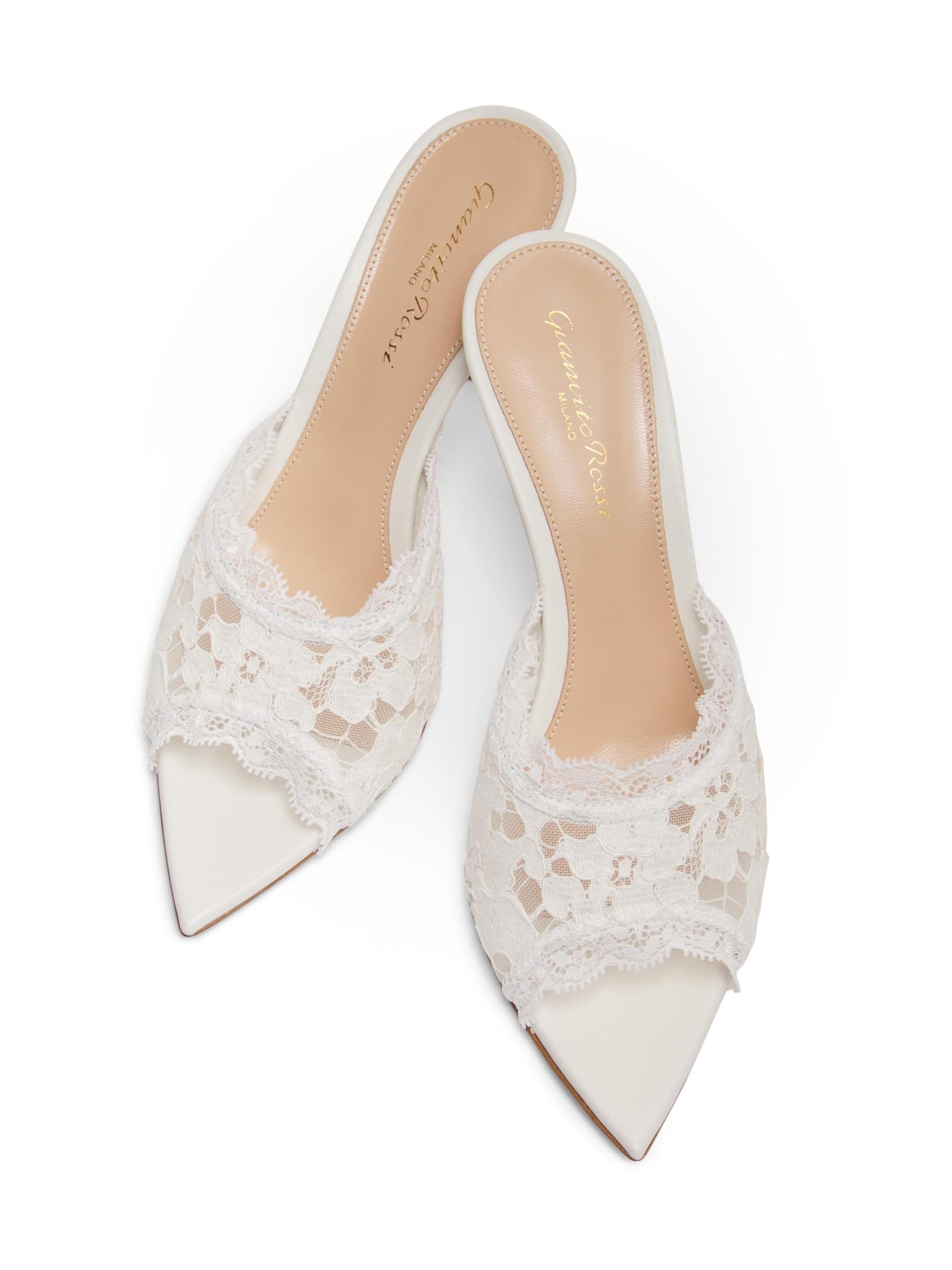 صُنع صندل Gianvito Rossi هذا من الدانتيل ومقدمة مفتوحة مع كعب ستيليتو.