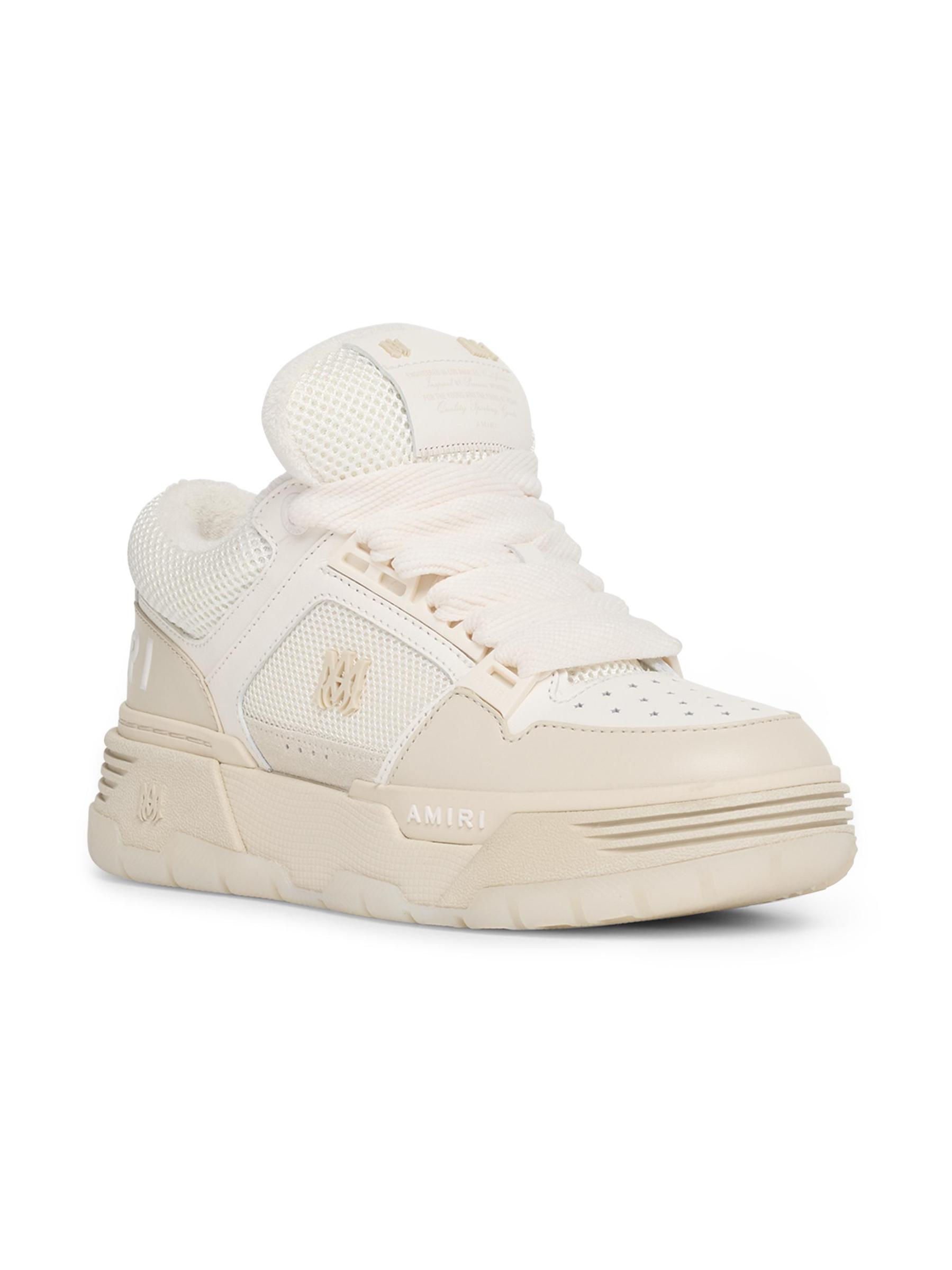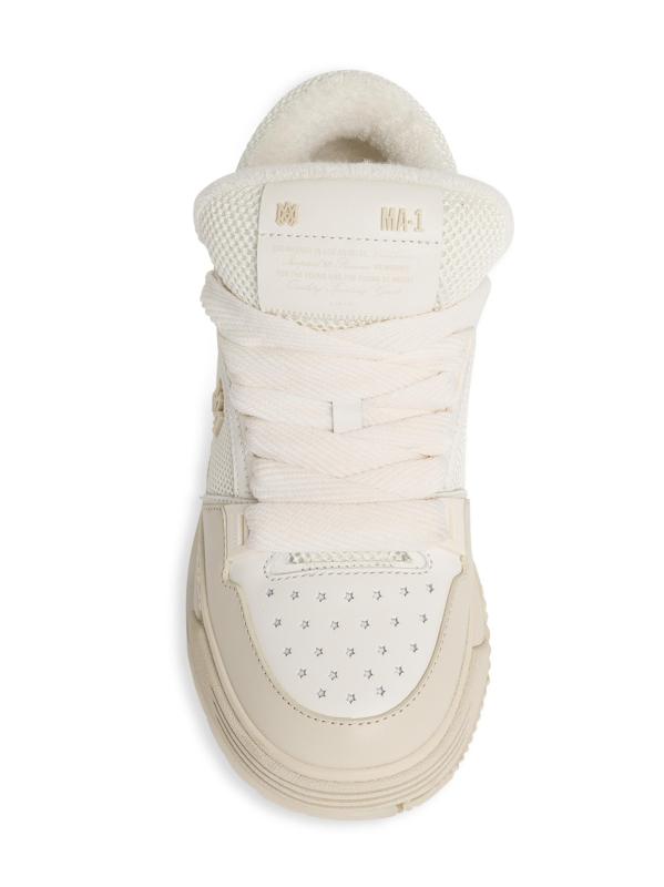 هذا الحذاء الرياضي MA-1 ذو الرقبة المنخفضة من Amiri، المصنوع من الجلد بلونين والشبك، هو تفاصيل الشعار النهائي.