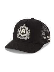من مجموعة MA Crest. قبعة سائق الشاحنة هذه من أميري مصنوعة من القطن ومطرزة بشعار العلامة المميز. تم الانتهاء من هذا النمط بحافة منحنية وسناباك.سنببك قطن بنسبة 100% تنظيف البقع صُنع في الولايات المتحدة الأمريكية