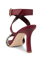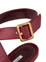 تم تصميم صندل Mabeco الجلدي من Manolo Blahnik بكعب خنجر.