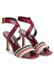 تم تصميم صندل Mabeco الجلدي من Manolo Blahnik بكعب خنجر.إصبع مفتوح إغلاق بمشبك الجزء العلوي مصنوع من الجلد والفيسكوز والحرير الصناعي والأكريليك صُنع في إيطاليا