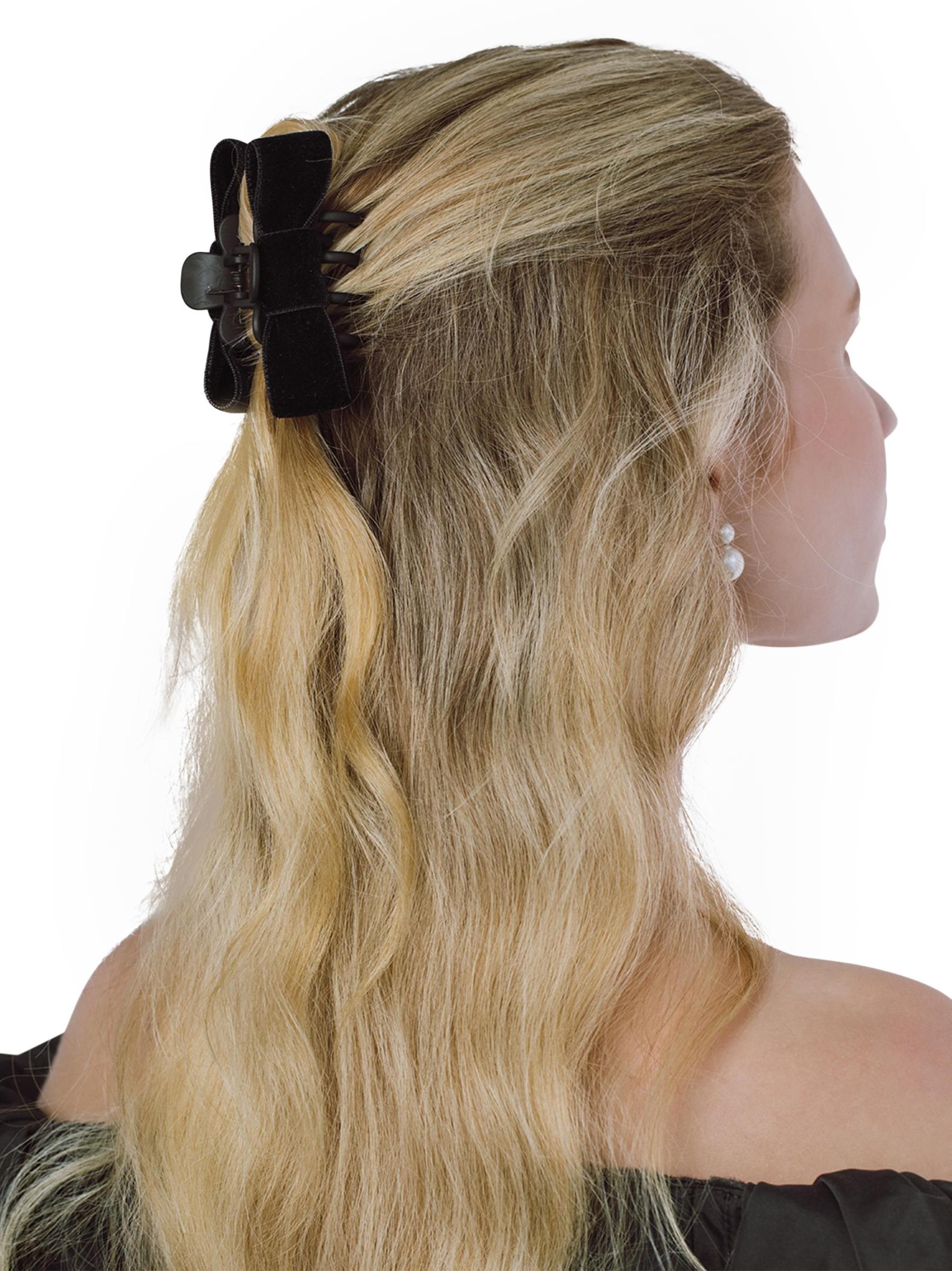 مشبك فك مادي من جينيفر بير مصنوع من الحرير ومزين بفيونكة مربوطة بدقة.