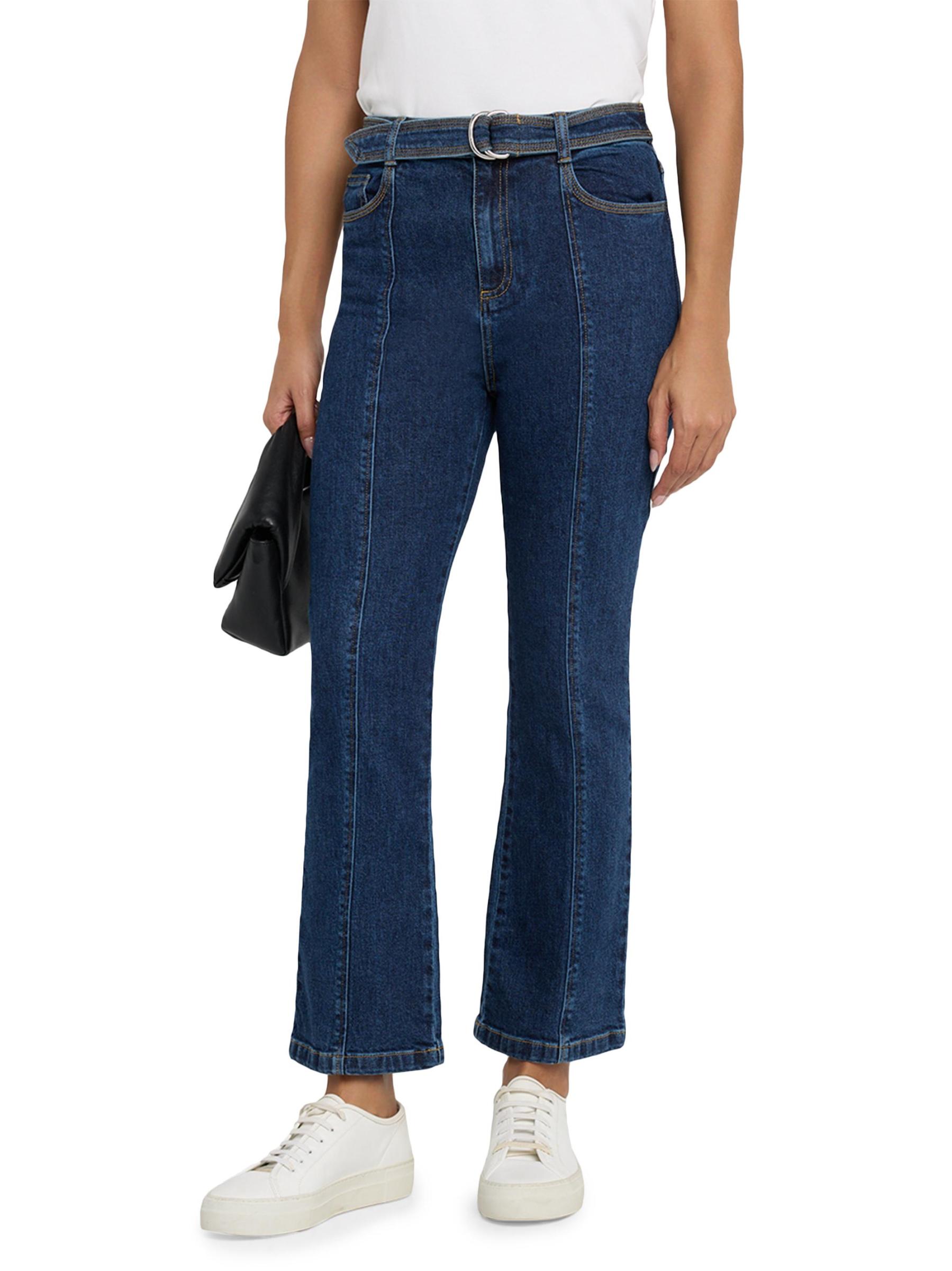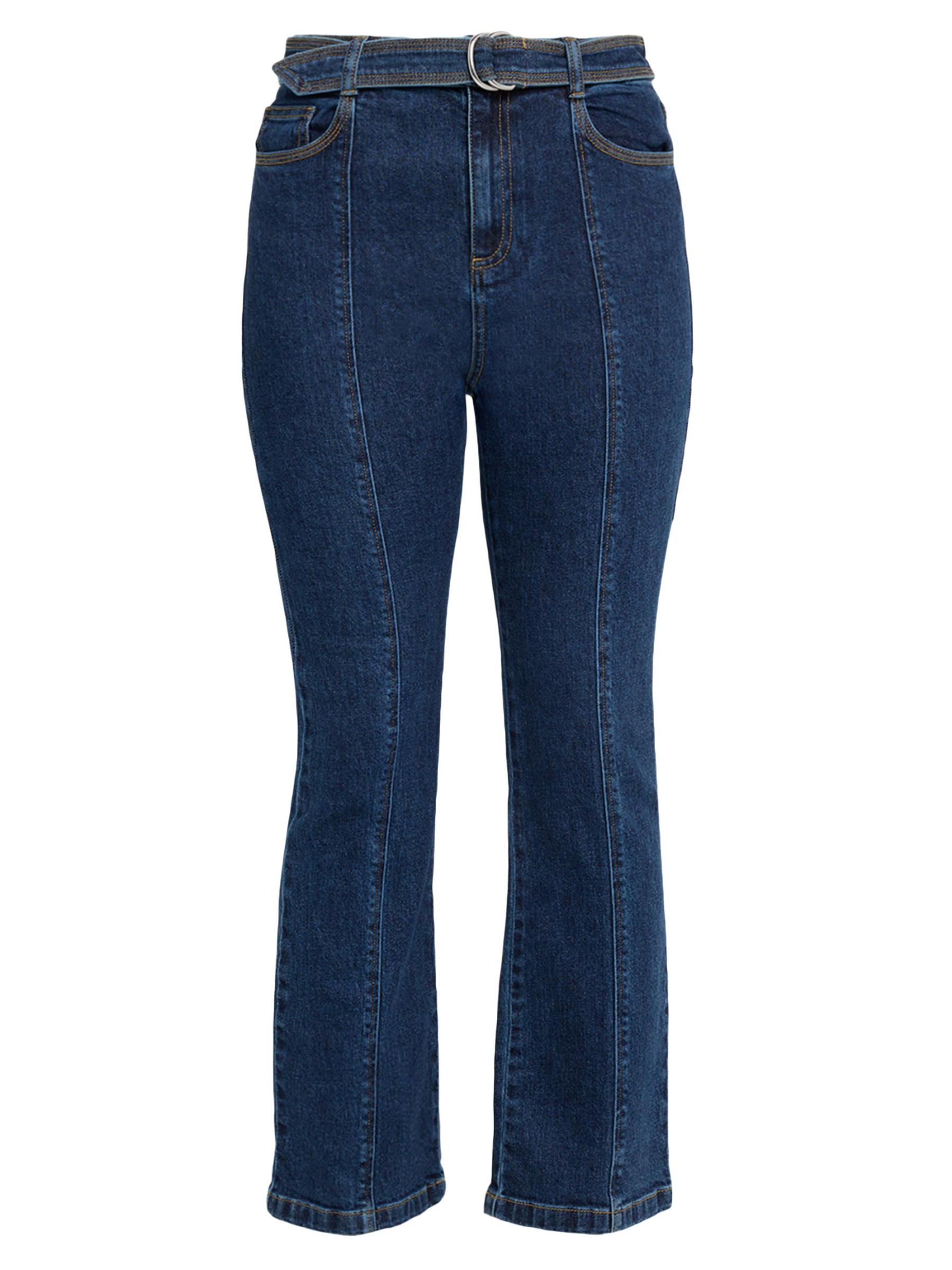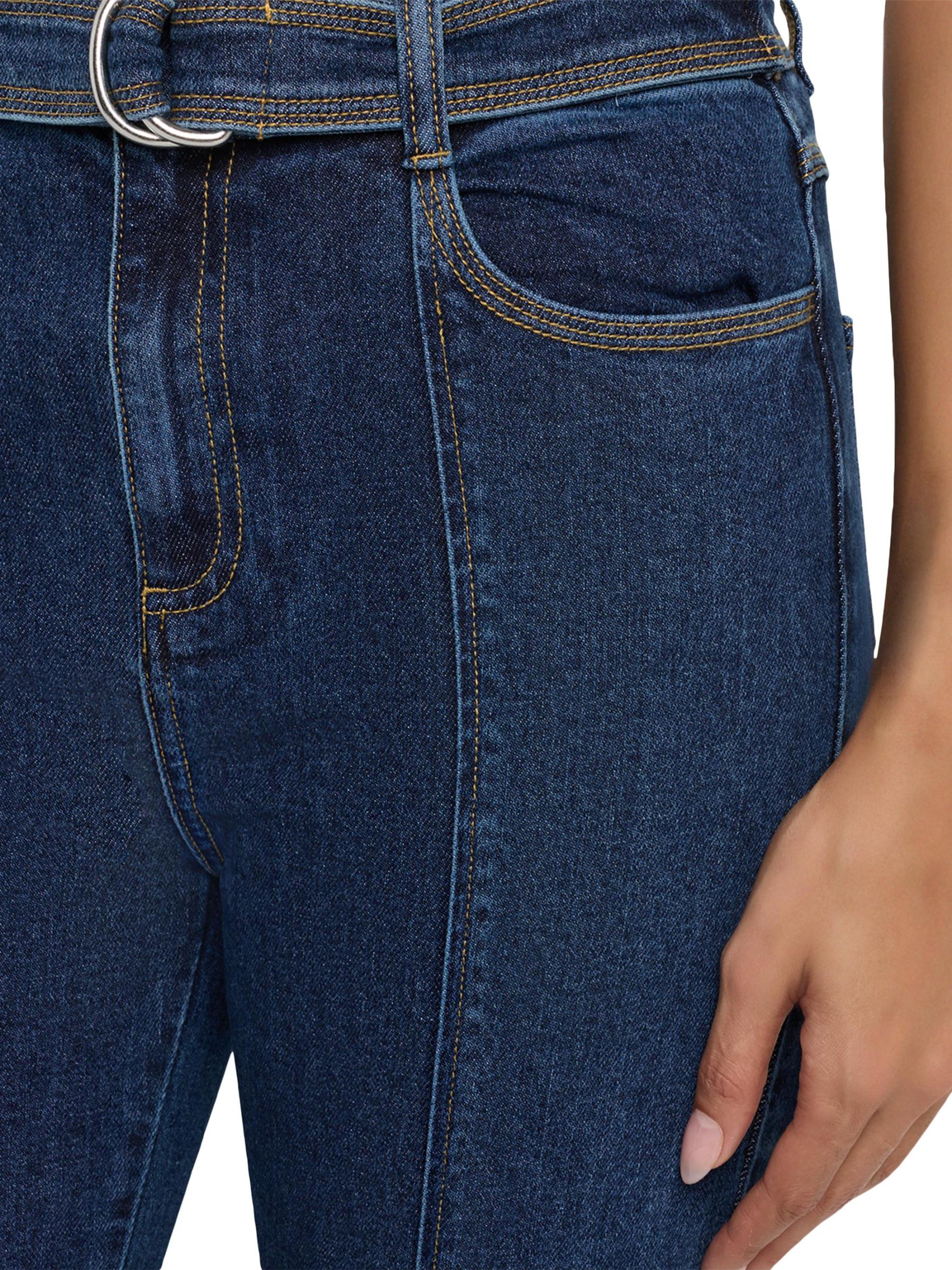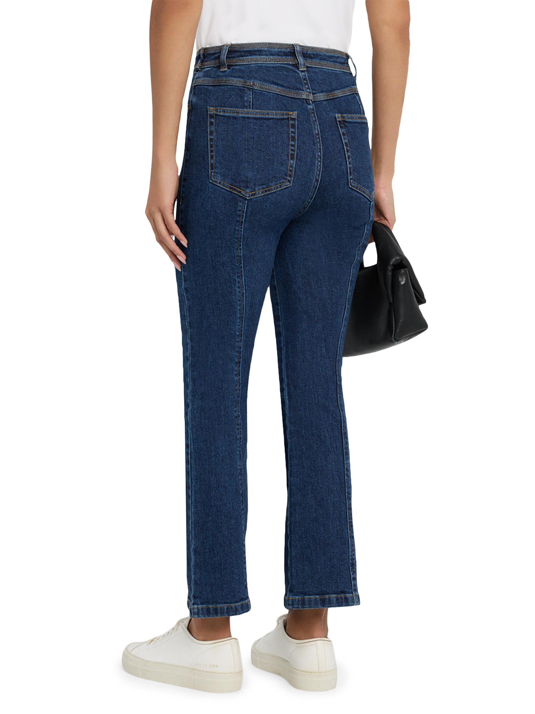يتميز بنطال جينز Madi هذا من Cinq á Sept، المصنوع من القطن المرن، بتصميم بخمسة جيوب، وحزام على شكل حرف D متصل، وحافة مضيئة رقيقة.