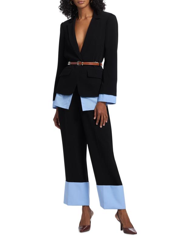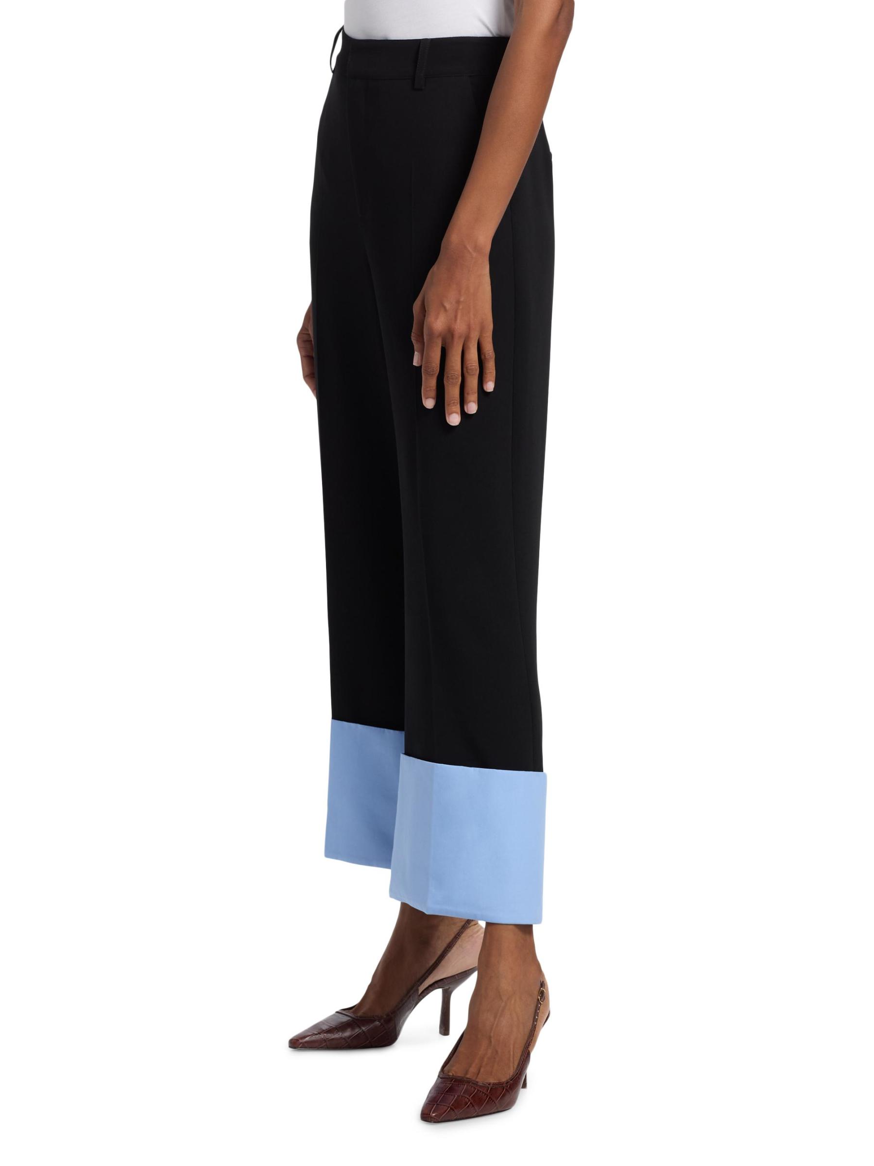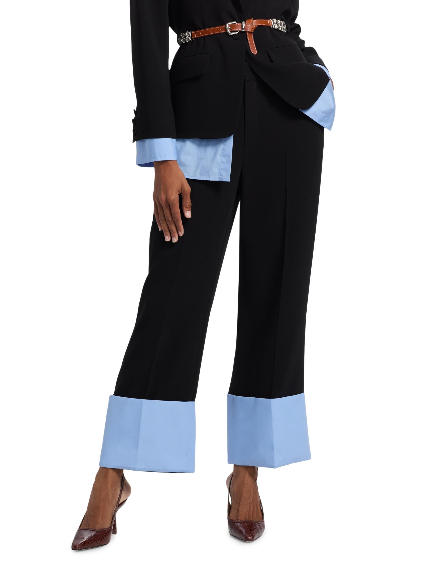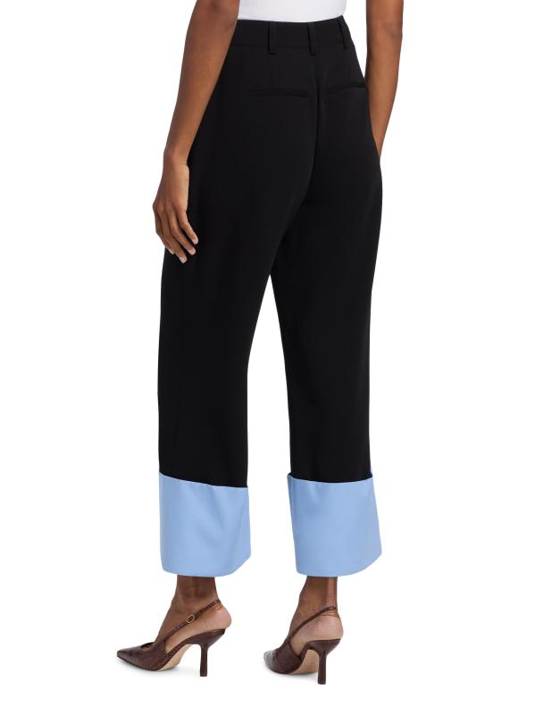 يتميّز بنطال Maesa من Cinq à Sept بتصميم مرتفع بأرجل مستقيمة وتصميم مطوي من الأمام وحاشية مطوية.