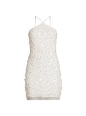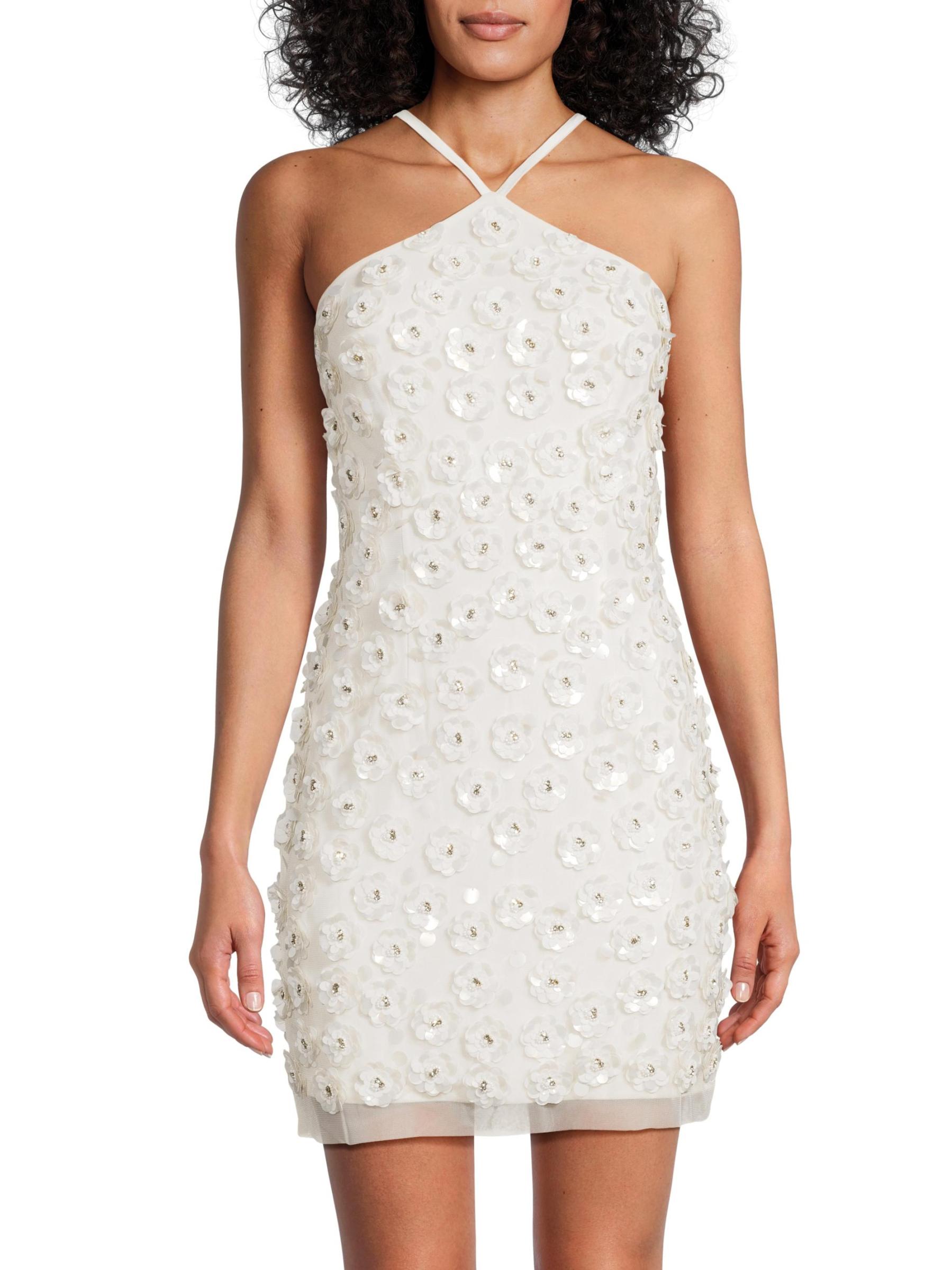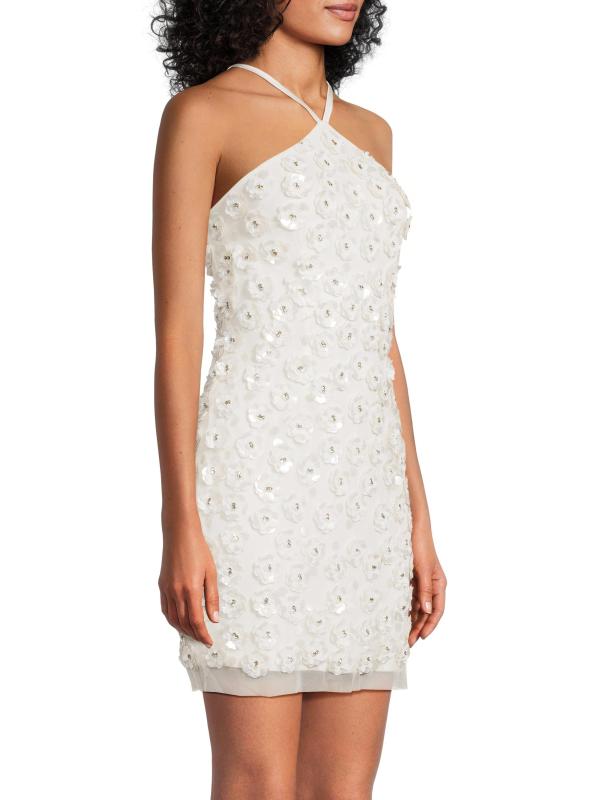 فستان Maeve القصير من Liv Foster مزيّن بالخرز المستوحى من الأزهار ومصمّم بدعامة خفيفة من التول.رقبة هالتيرنك بدون أكمام إغلاق بسحّاب خلفي مخفي 100% بوليستر تنظيف البقع مستوردة
