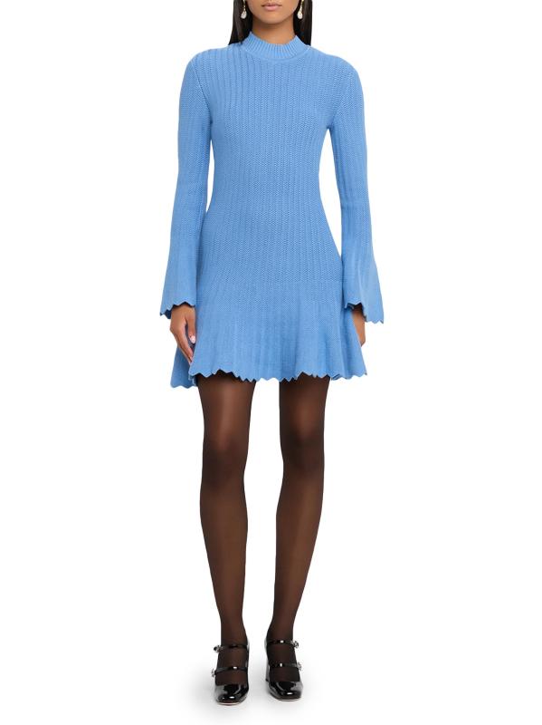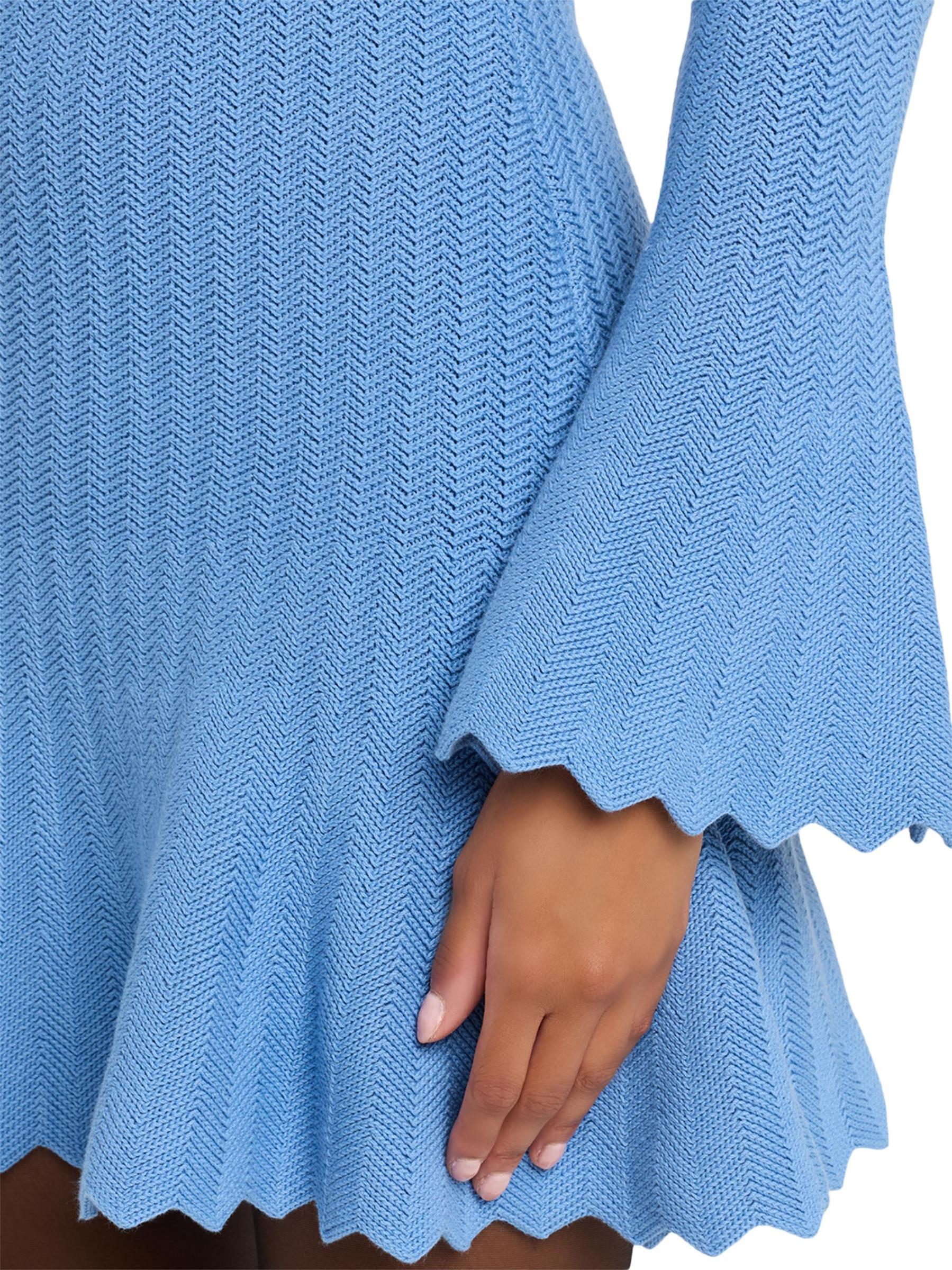 يتميز فستان Maja المحبوك بأكمام طويلة من Aknvas المصنوع من القطن بتضليع الشكل وحواف صدفية.