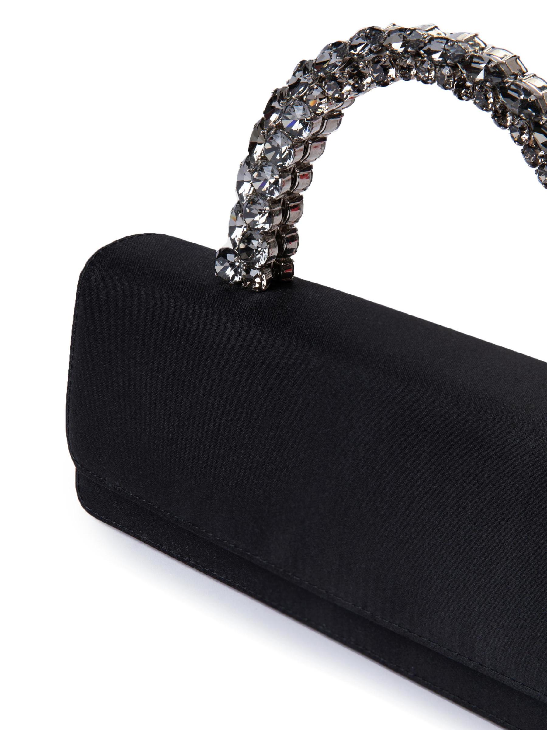حقيبة Malika هذه من L'Alingi مصنوعة من الساتان وتتميز بمقبض نحاسي مزين بالكريستال.