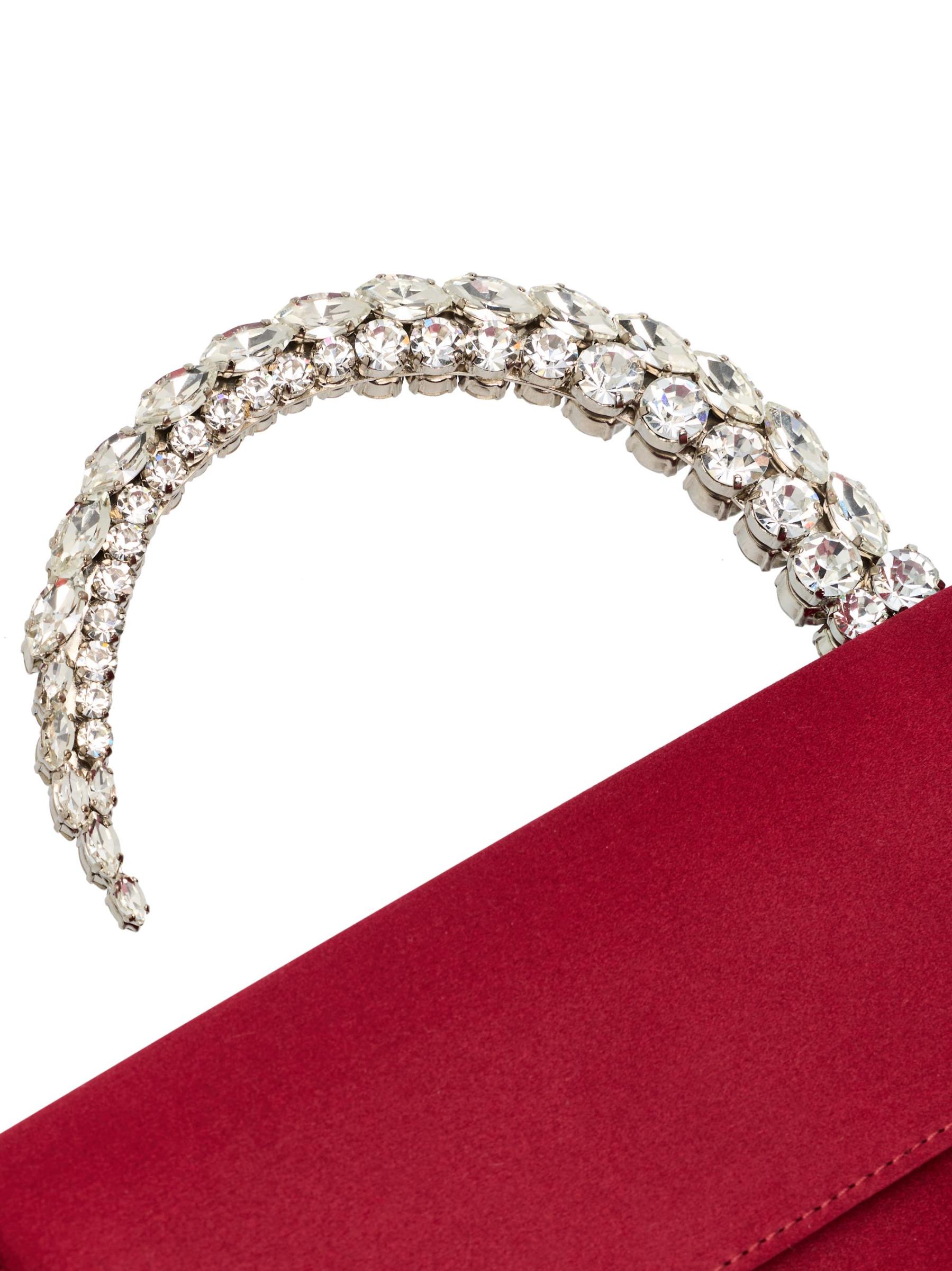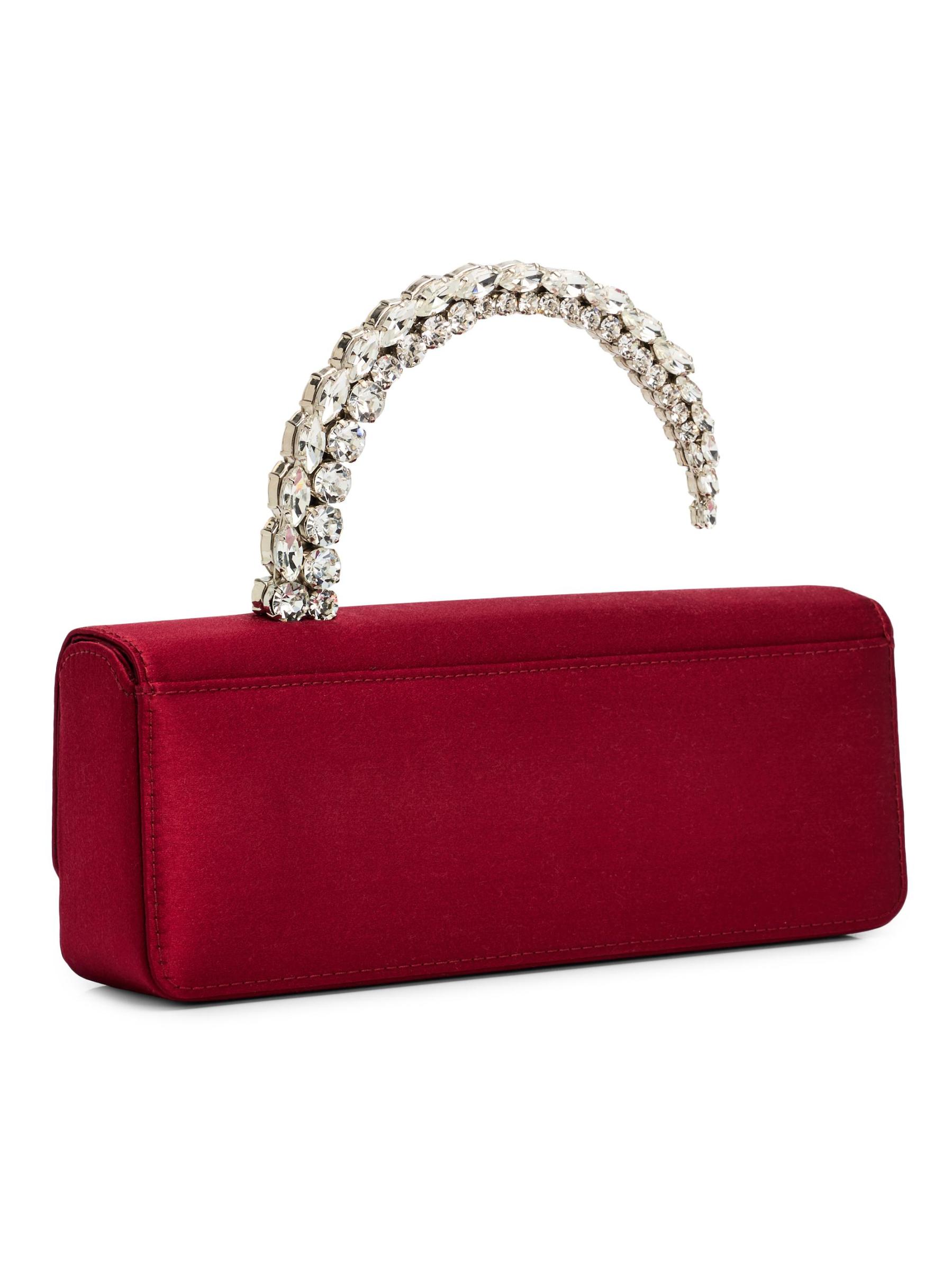 حقيبة Malika هذه من L'Alingi مصنوعة من الساتان وتتميز بمقبض علوي مرصع بالحجارة باللون الذهبي. يضيف الإغلاق القابل للطي والجيب الداخلي المريح مزيدًا من الراحة لهذا الطراز الأنيق.
