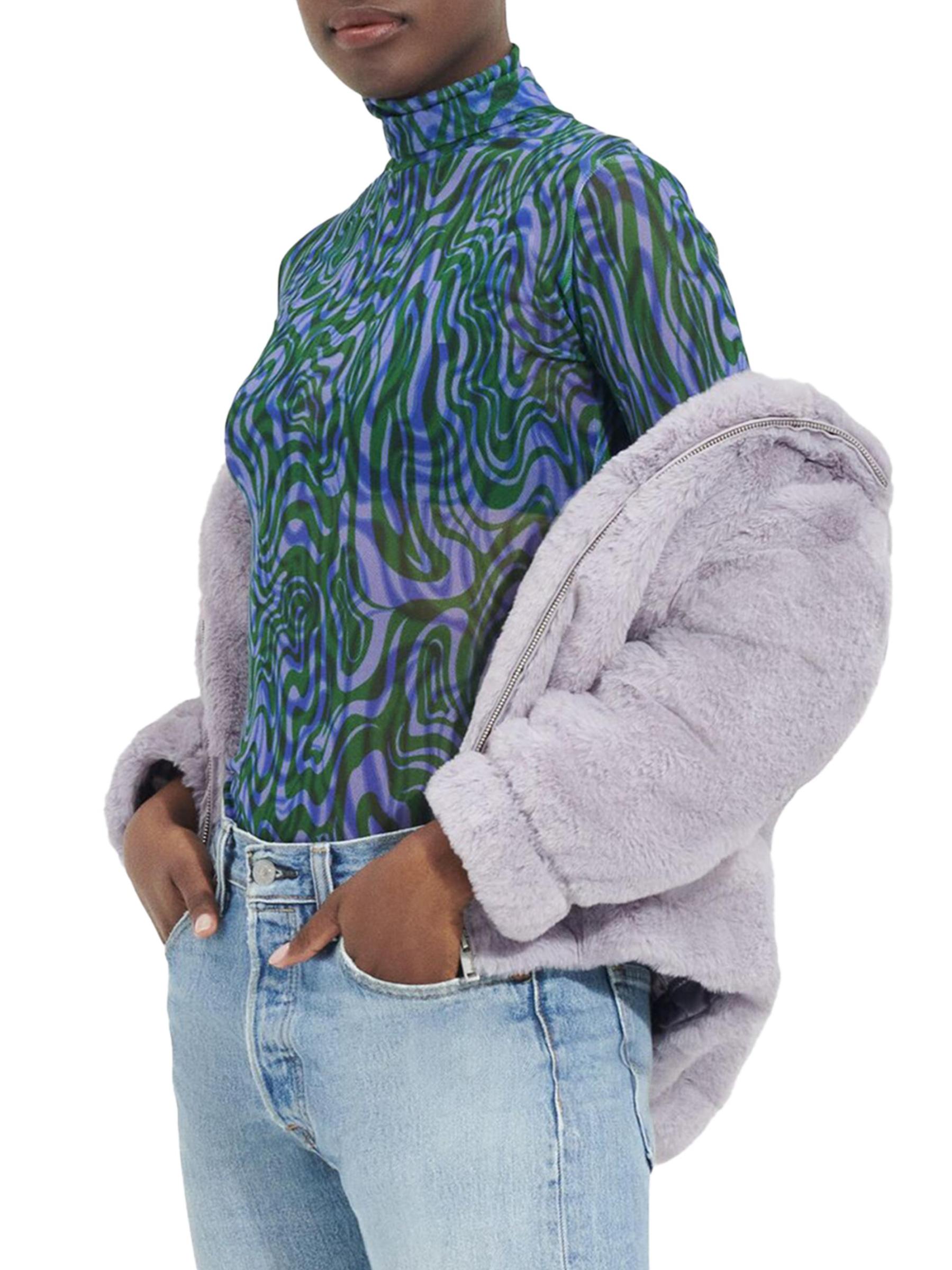 هودي ماندي من الفرو الصناعي بسحّاب أمامي